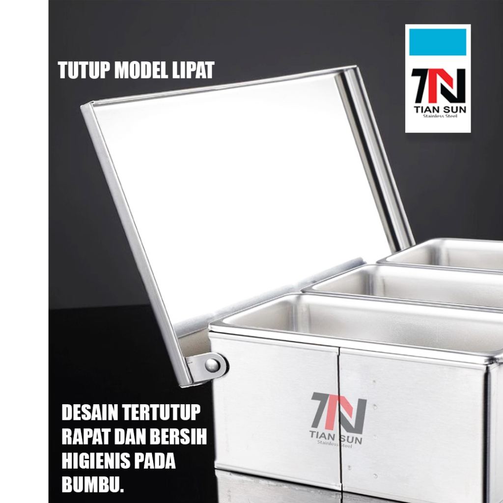 Tiansun Kontainer Tempat Penyimpapan Bumbu Stainless Steel / Seasoning Box Kotak Bumbu Stainless