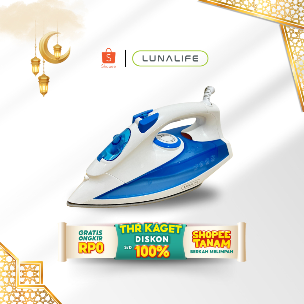 LUNALIFE Setrika Baju Uap SU1C Bahan Ceramic Coating Tapak Anti Lengket 400Watt Panas Merata Low Watt