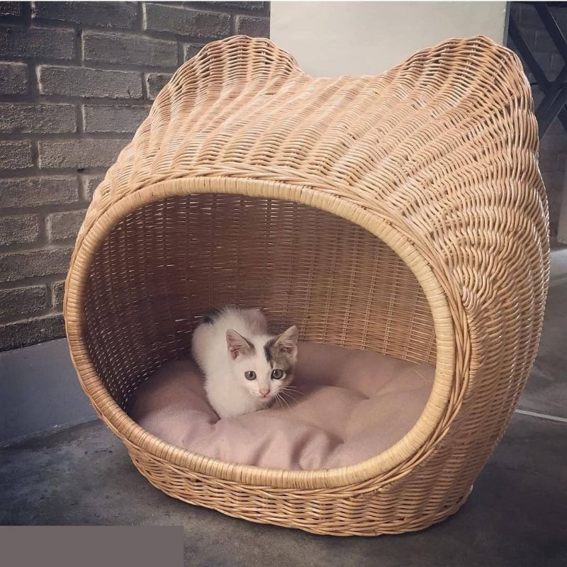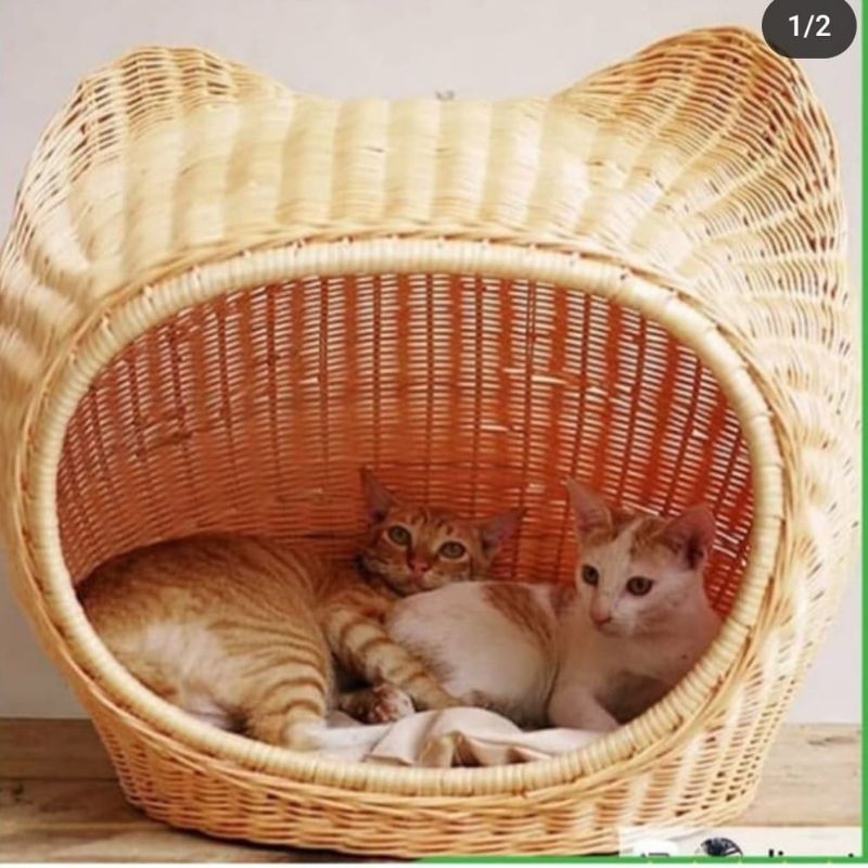 FLASH SALE Kandang Rumah Kucing Rotan Natural Gratis Bantal Tempat Tidur Hewan