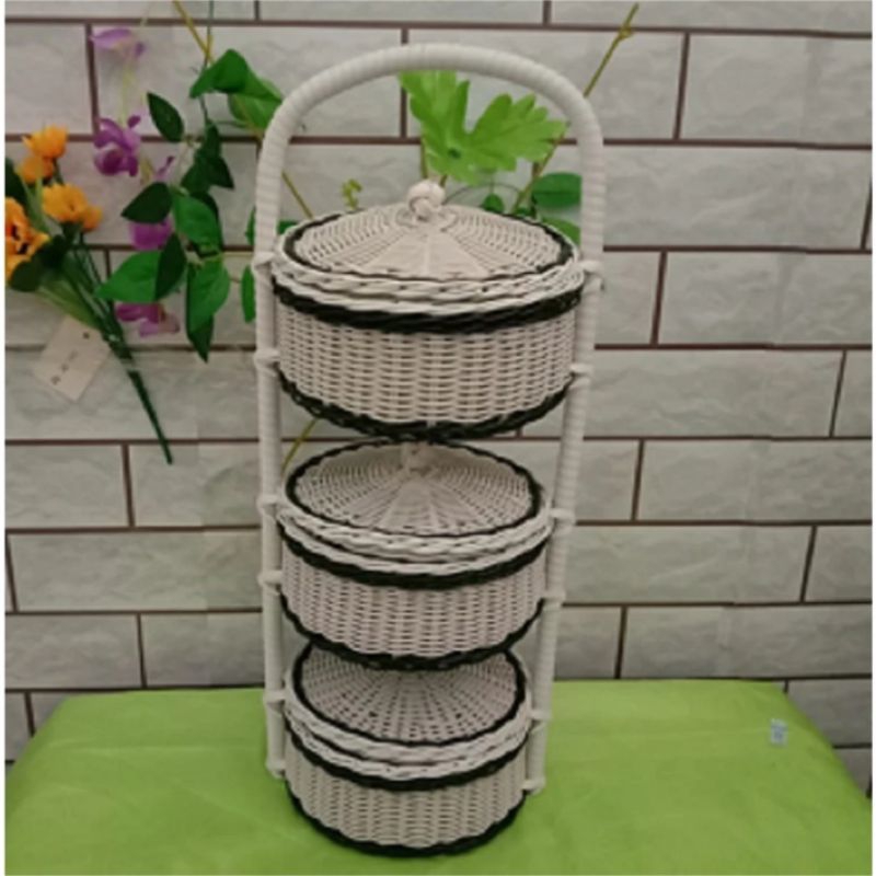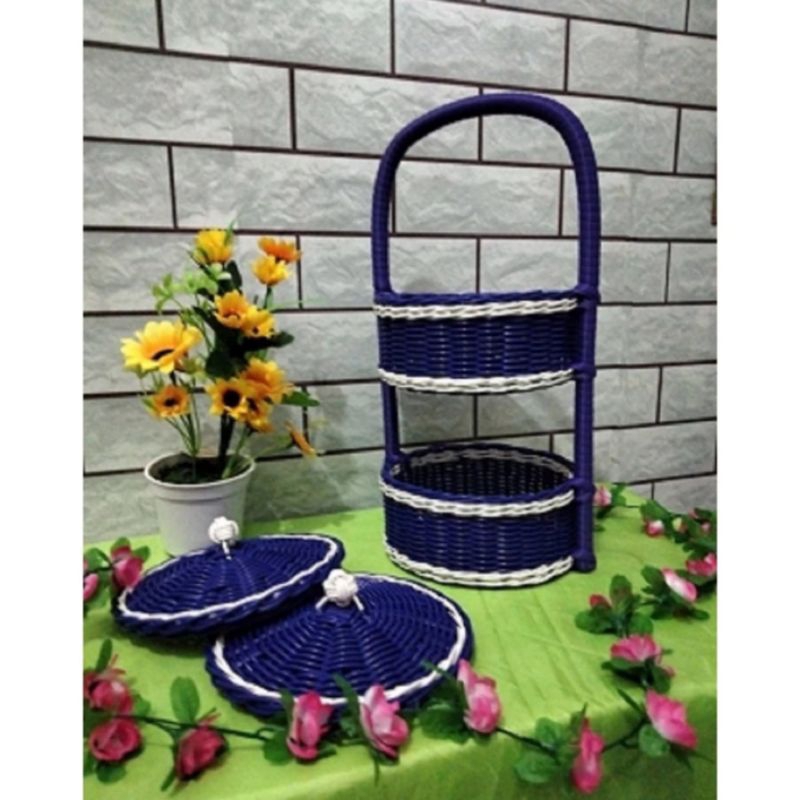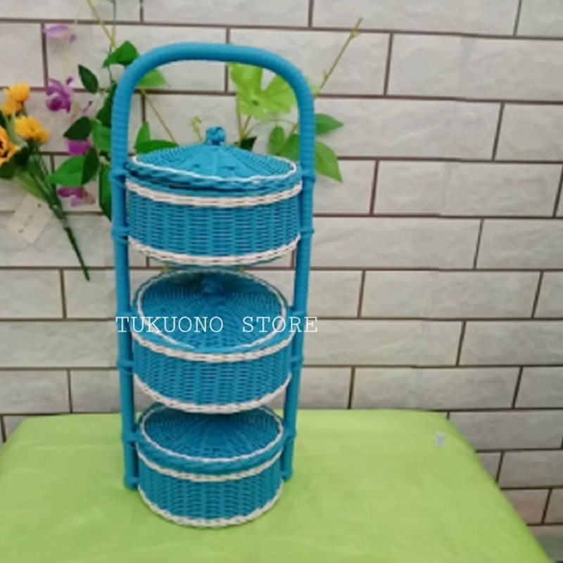 FLASH SALE Rantang Bumbu 2 & 3 Susun Anyaman Sintetis Rak Keranjang Bawang Dapur Rotan