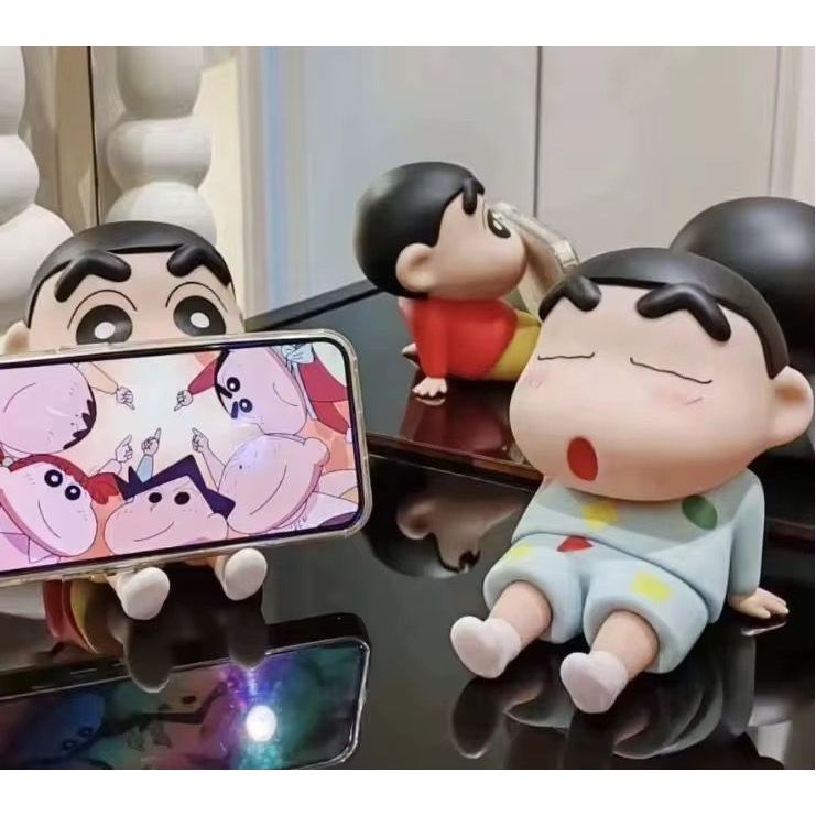 FLASH SALE Phone Holder Crayon Shinchan Figure Toys Holder Pajangan Meja Lucu Lazy Santai