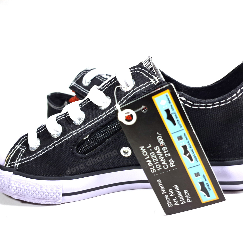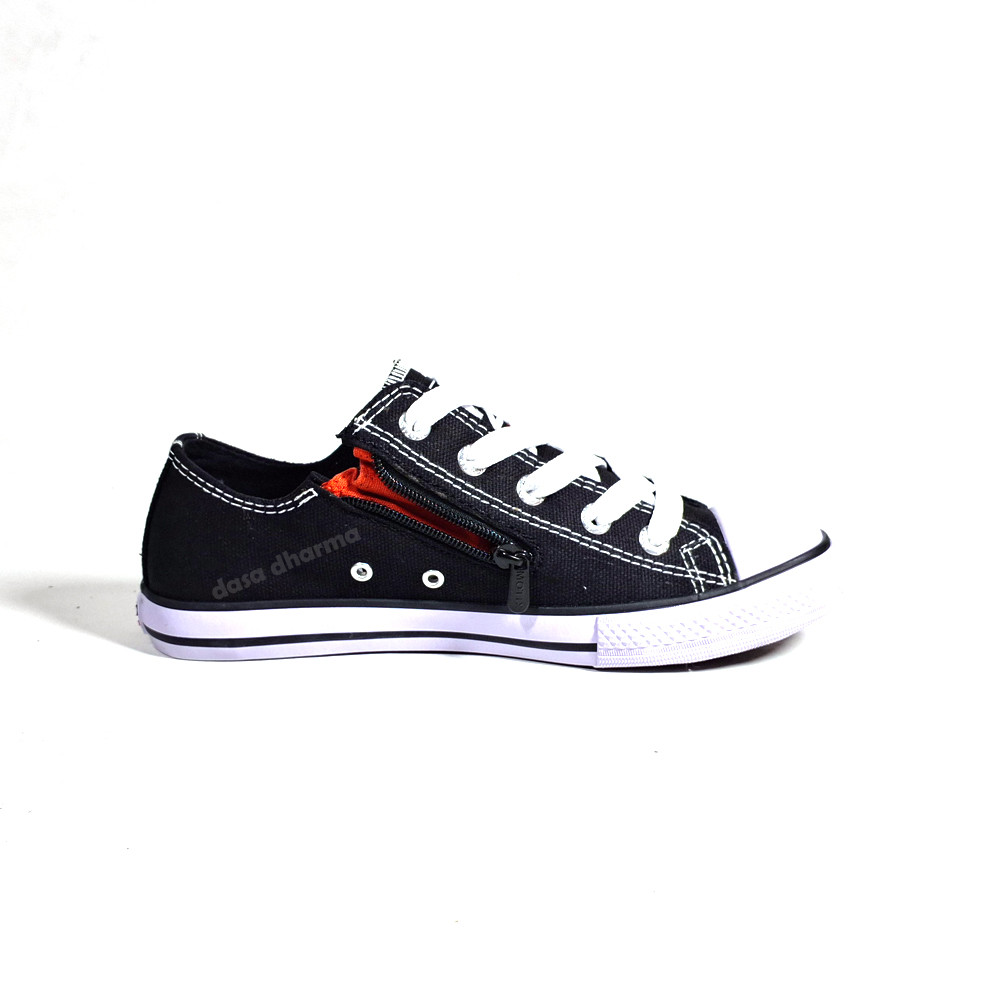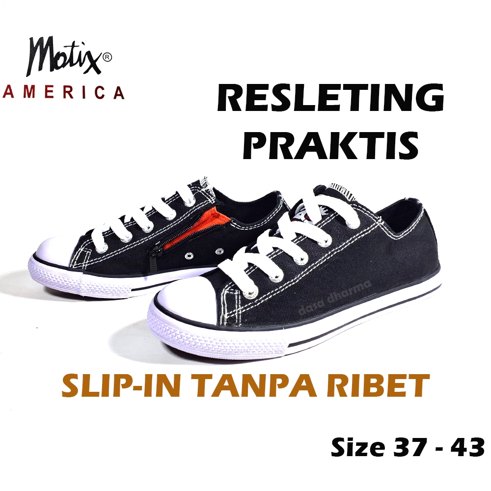 Sepatu Sekolah Slip On Hitam Resleting Praktis Canvas Low Pria Wanita Original Motix