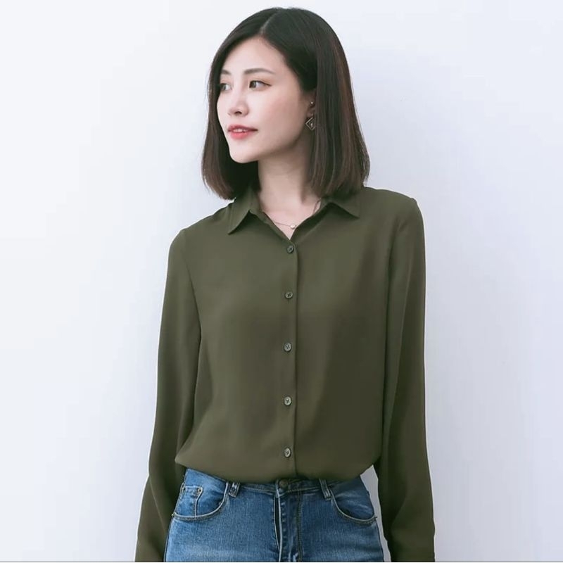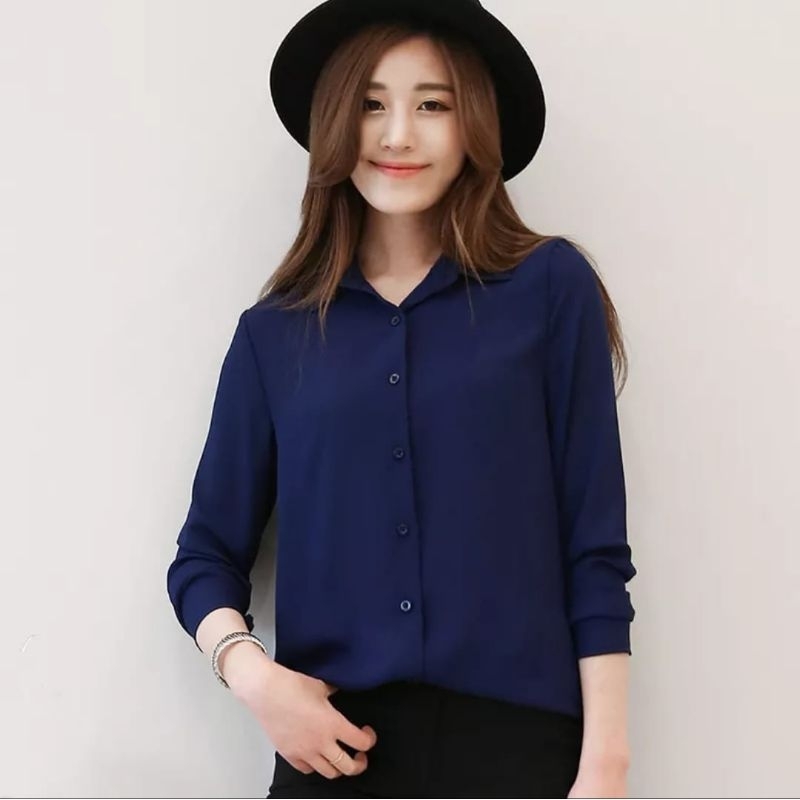 Kemeja Polos Wanita Kasual Basic Lengan Panjang Cewek Shirt