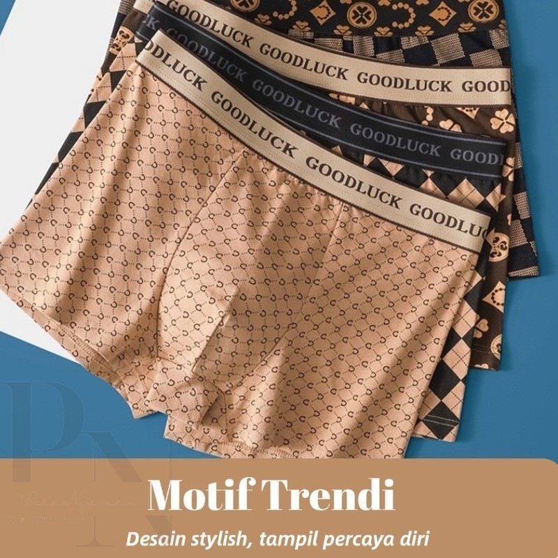 Celana Boxer Pria Katun 10A Antibakteri – Celana Dalam Pria Fashion Cotton Lembut, Breathable & Stylish 4Pcs