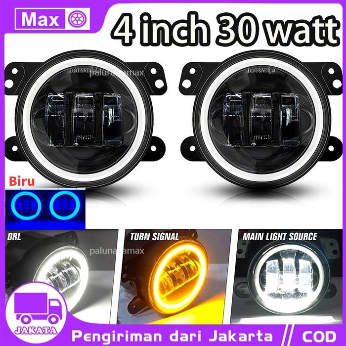 2PCS Lampu Foglamp Led Daymaker 4 inch 3 Lensa Full Ring 2 Warna biru / kuning Baut Bumper Car - B