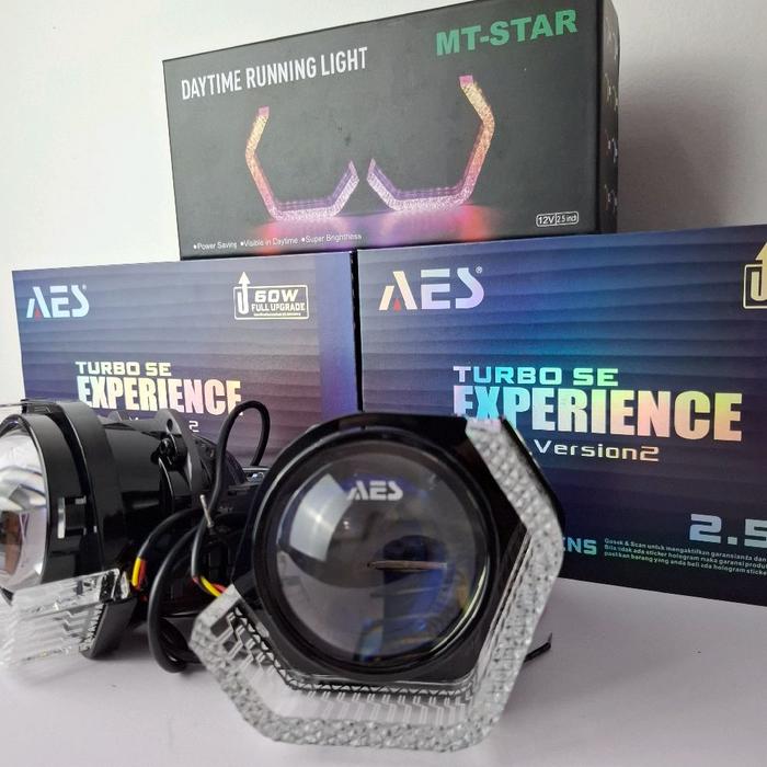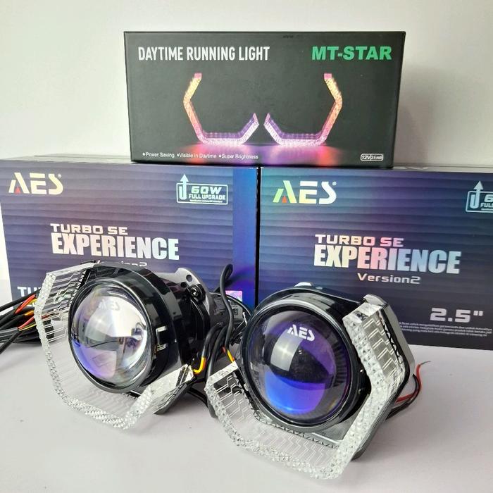SEPASANG PAKET LENGKAP BILED AES EXPERIENCE V2 + SHROUD HEXA RGB 25 INCI UNTUK MOTOR DAN MOBIL. Car Lampu - merah