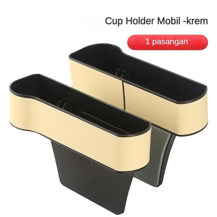 【2PCS】 Front Seat Car Organizer Storage / Cup Holder / Kompartmen Tempat Penyimpanan Universal Mobil - Krem(2pcs)
