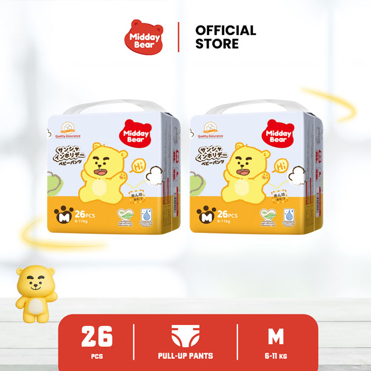 Pampers Midday Bear Pants Comfort Fit Xtra Kering M 26 Popok Celana Bayi 2 Packs