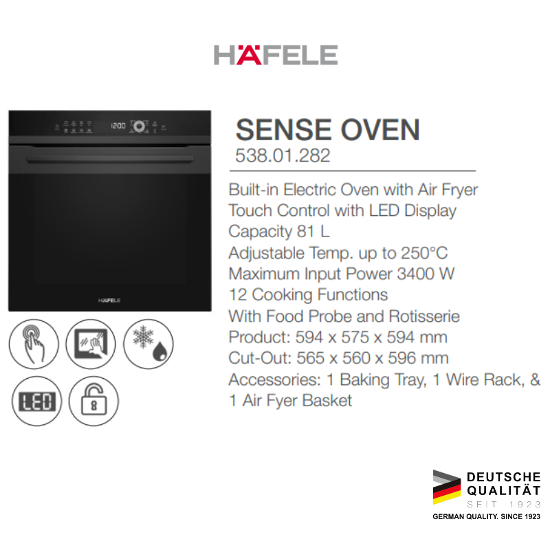 Hafele Sense Oven & Air Fryer Tanam Listrik 81Liter Touch Screen Black – Built-in Electric Oven Hitam