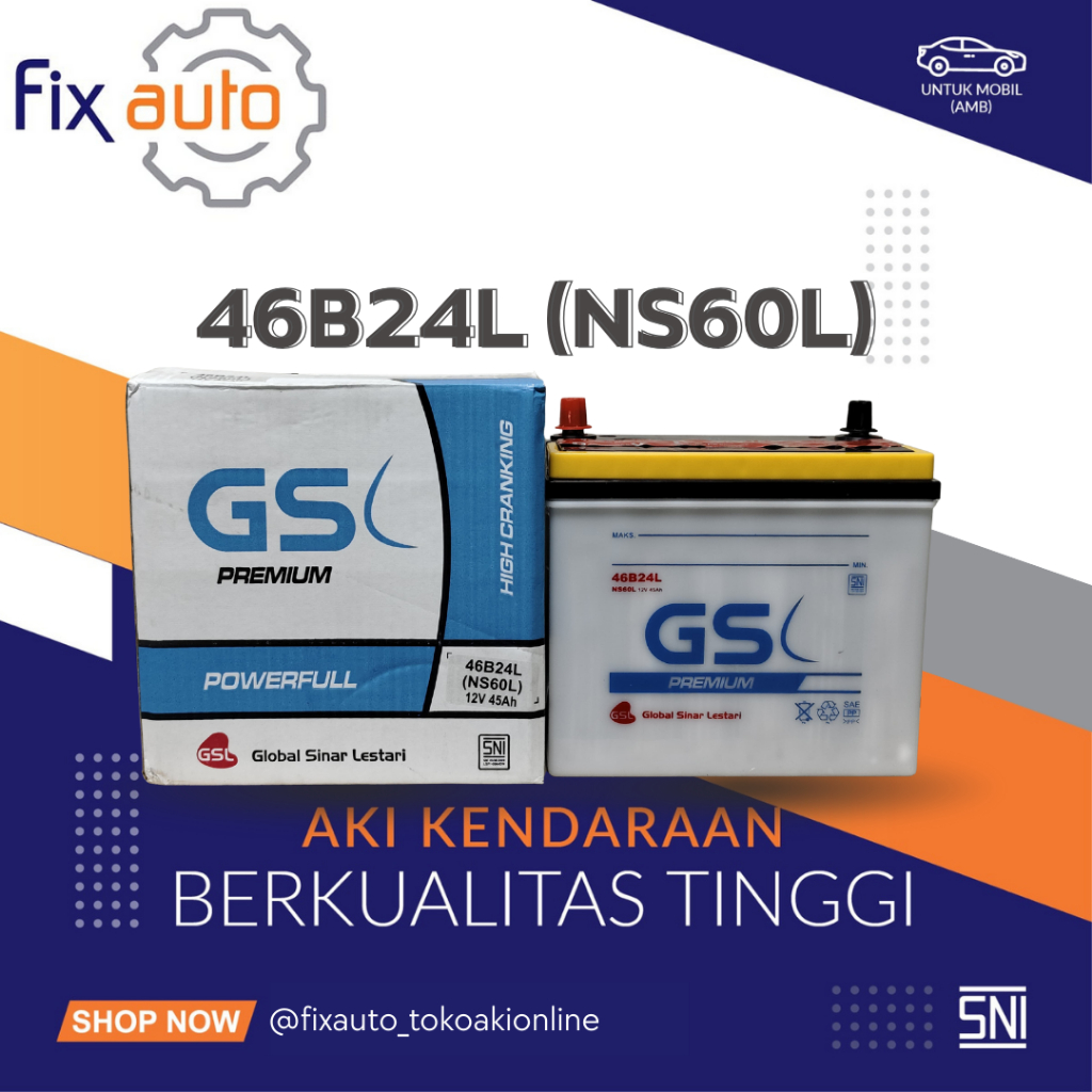 Aki Mobil Basah GSL Premium NS60L 46B24L Powerfull 45Ah 12V