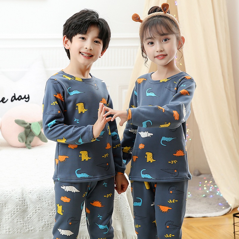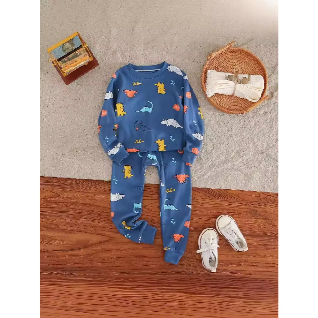 Baju Tidur Anak Motif Dinosaurus Biru Bahan Katun Doubleknit