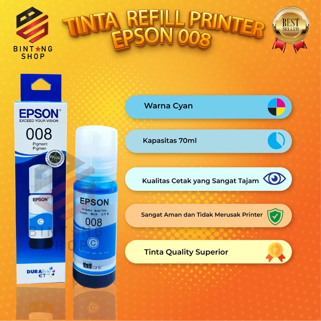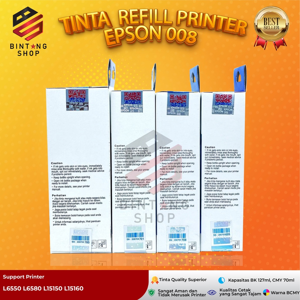 1 Paket Isi 4 Warna Tinta Epson 008 Untuk Printer L6550 L6580 L15150 L15160 Cetak Foto & Dokumen Lebih Hidup