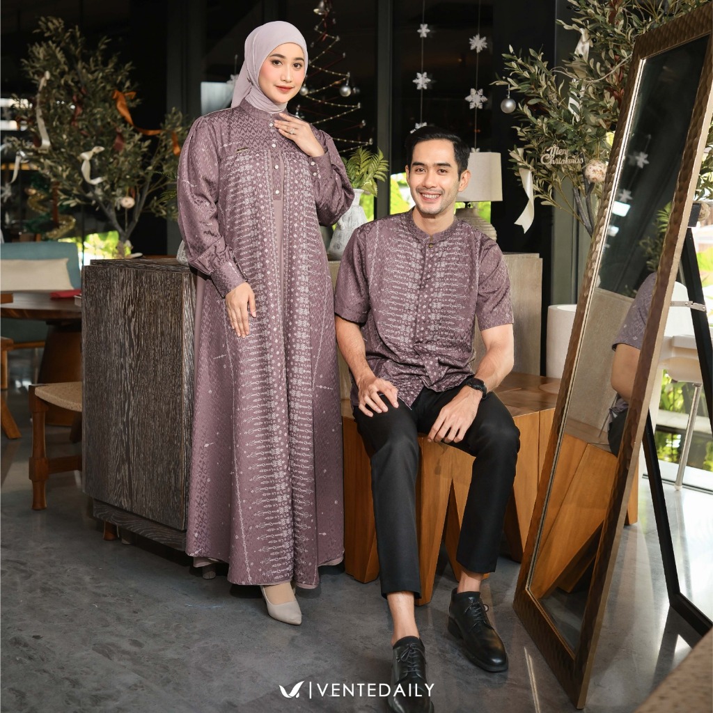 Ventedaily - Launa Couple Baju Pasangan Gamis Kemeja Elegan Outfit Kondangan Couple Suami Istri