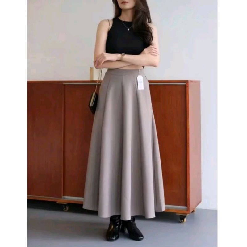 Rok Wanita Korean Loose Maxi Skirt Rok Wanita Anti Kusut Polyester Rok Flare Wanita Rok Basic Polos