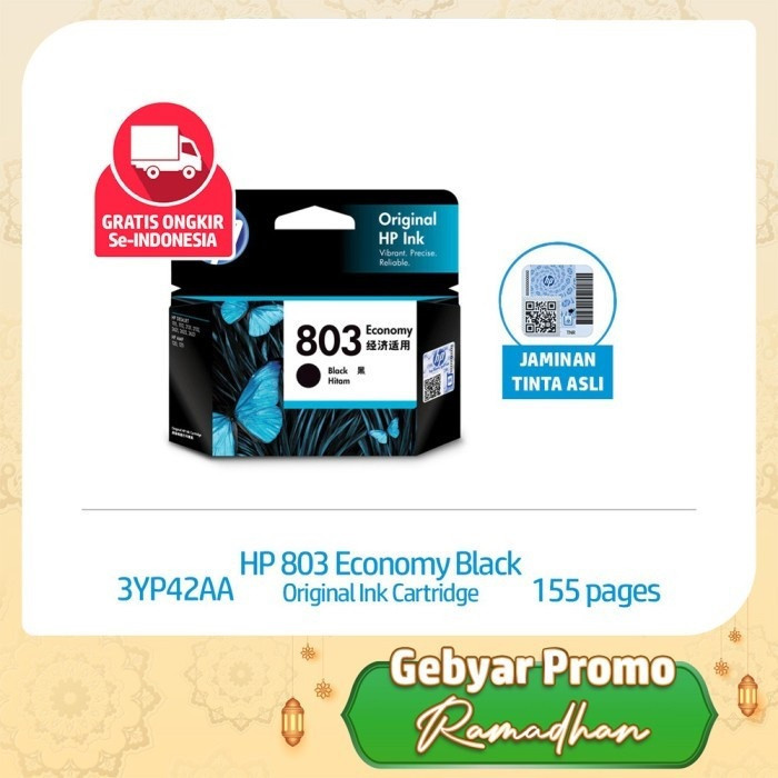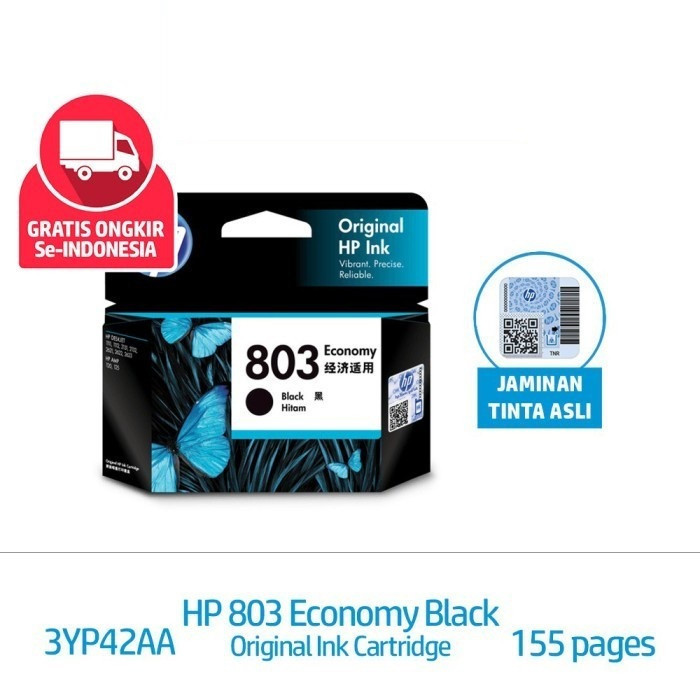 HP 803 Economy Black Tinta Printer Hitam Original DeskJet 1112 2132 26 AGP