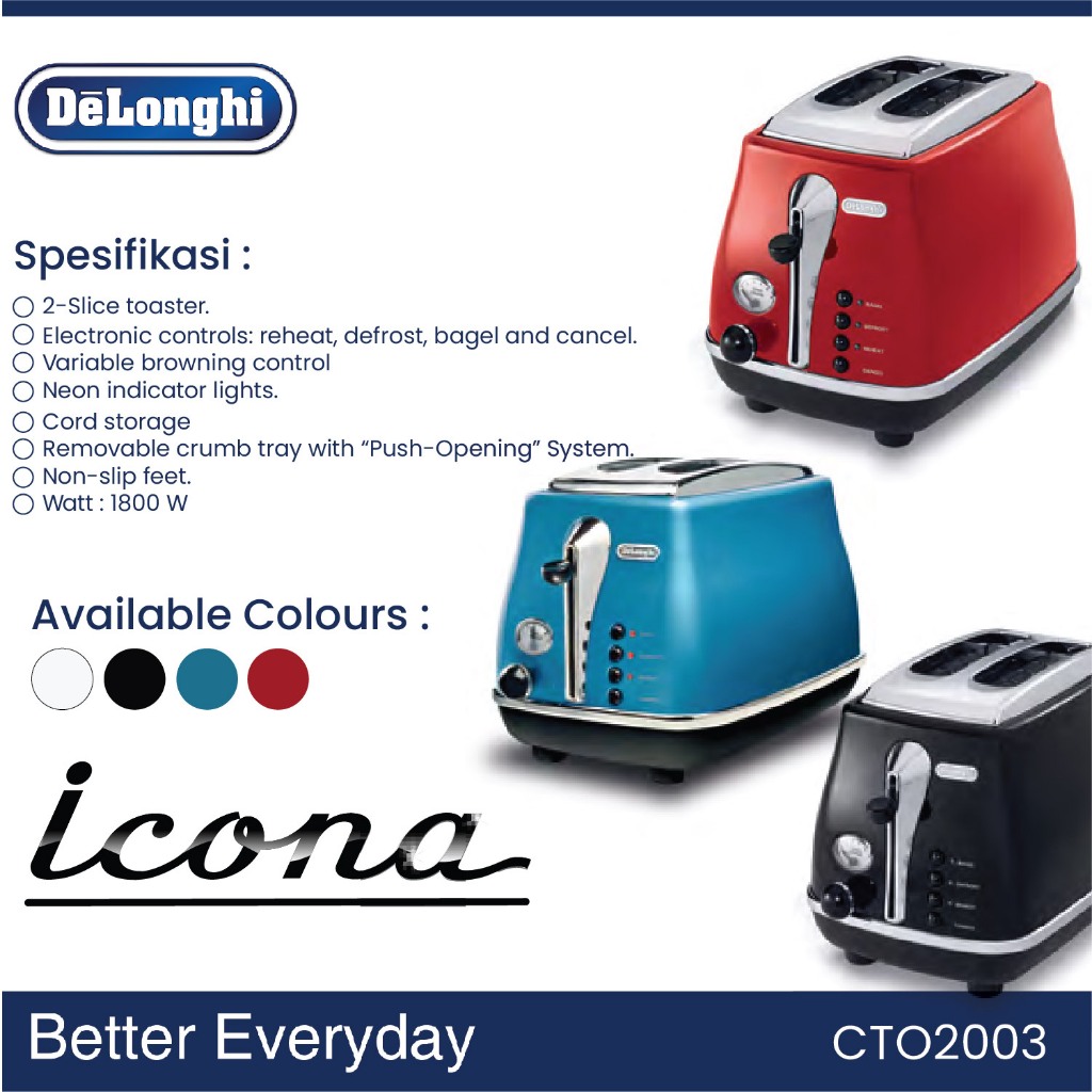 DELONGHI Toaster Pemanggang Roti 2 Slice Klasik - CTO 2003 - Grns 1 Thn