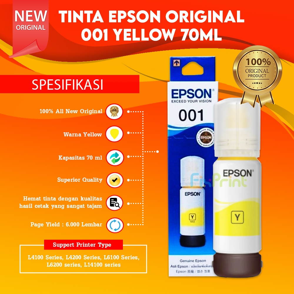 Tinta Epson 001 1Set Y100 Y200 Y300 Y400 L4150 L4160 L6160 L6170 L6190 Black Color Cyan Magenta Yellow HItam warna original ori 100 PERSEN Epson Indonesia