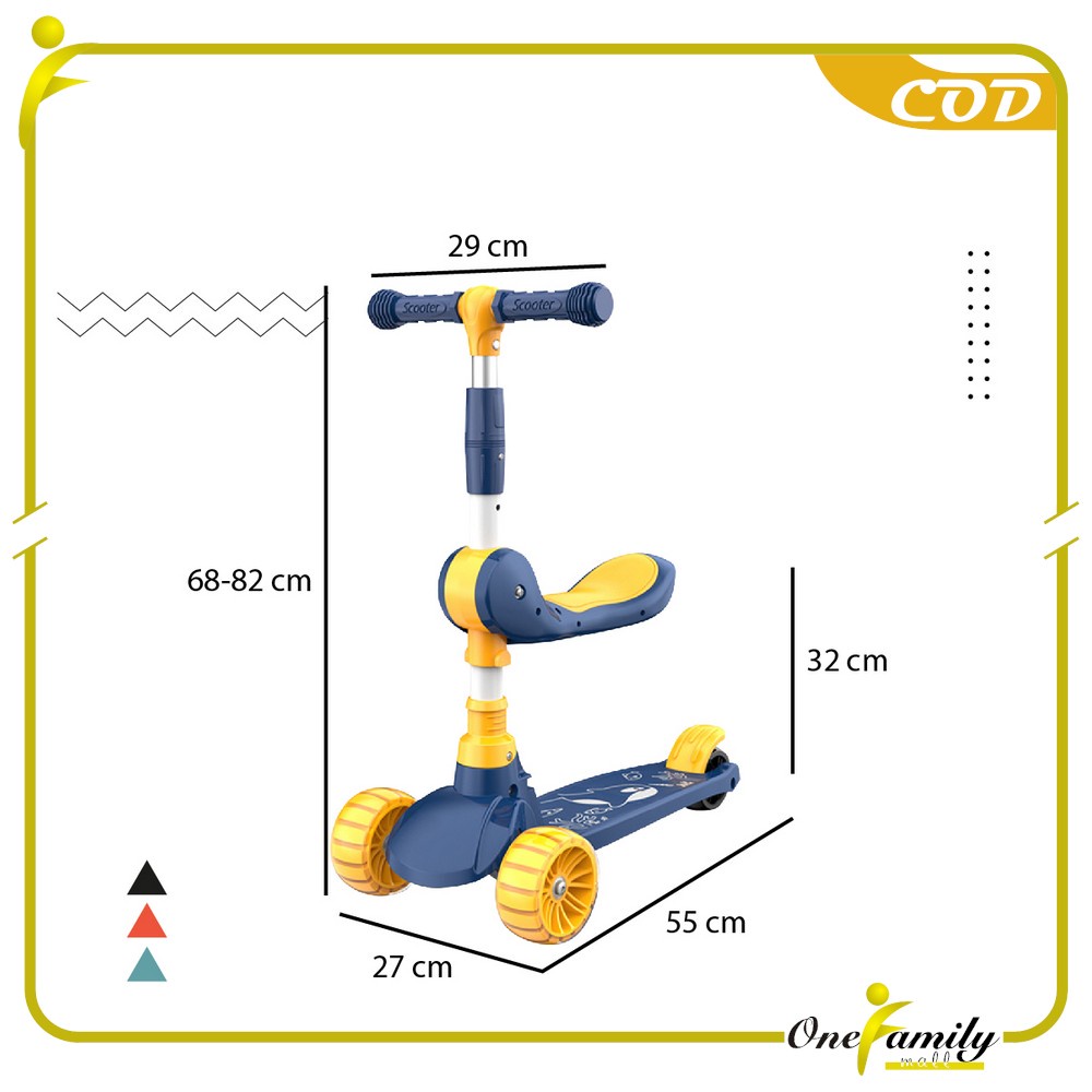 ONE-M290 Mainan Anak Skuter Otoped Sepeda Duduk 3 Roda 2in1 Ada Musik Lagu Lampu Scooter Anak roda nyala