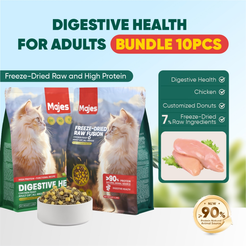 FLASH SALE [BUNDLING 10pcs] Digestive Health Chicken Feast Makanan Kucing Cat Food Freeze Dried High Protein 12kg