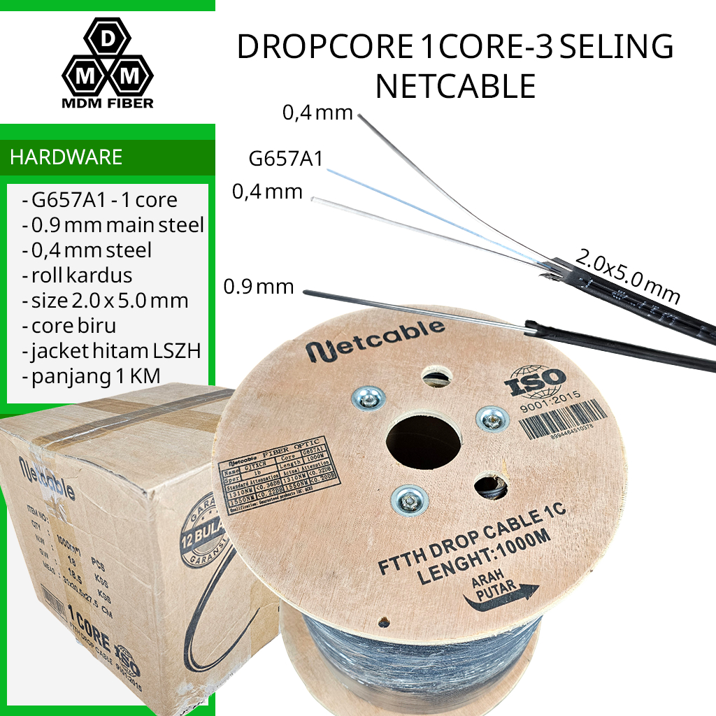 FLASH SALE Dropcore 1 Core 3 Seling 1000 Meter G657A1 kabel fiber optik Global Netcable Mimacro MDM Fiber