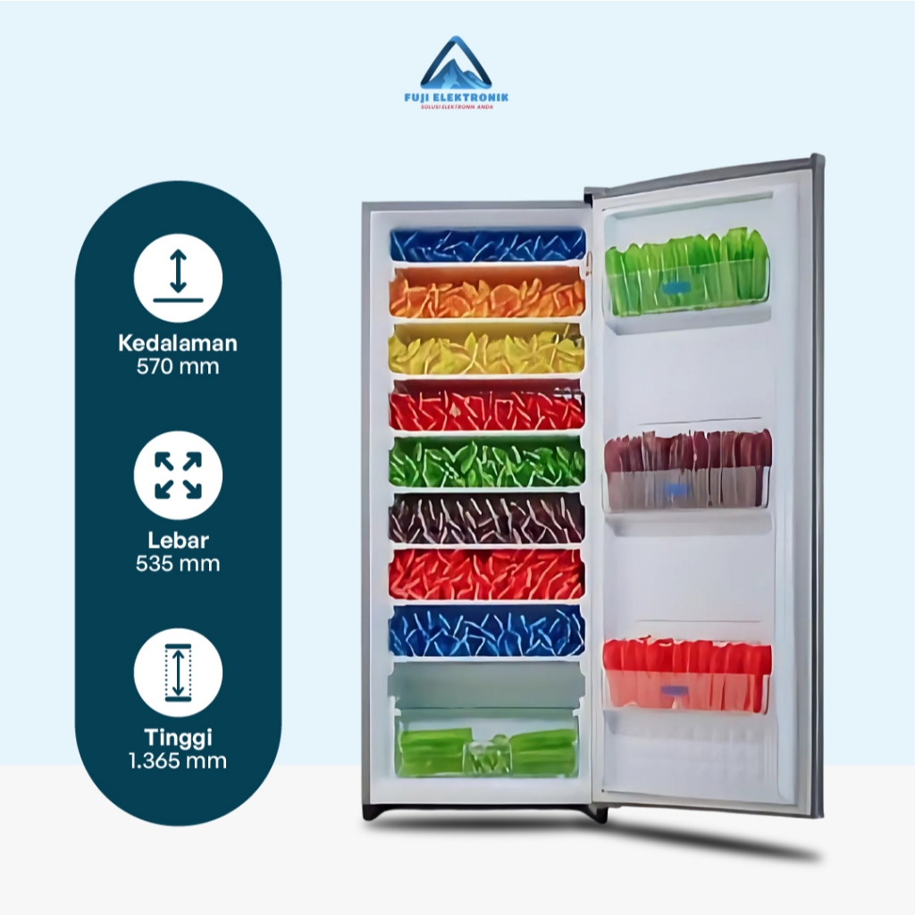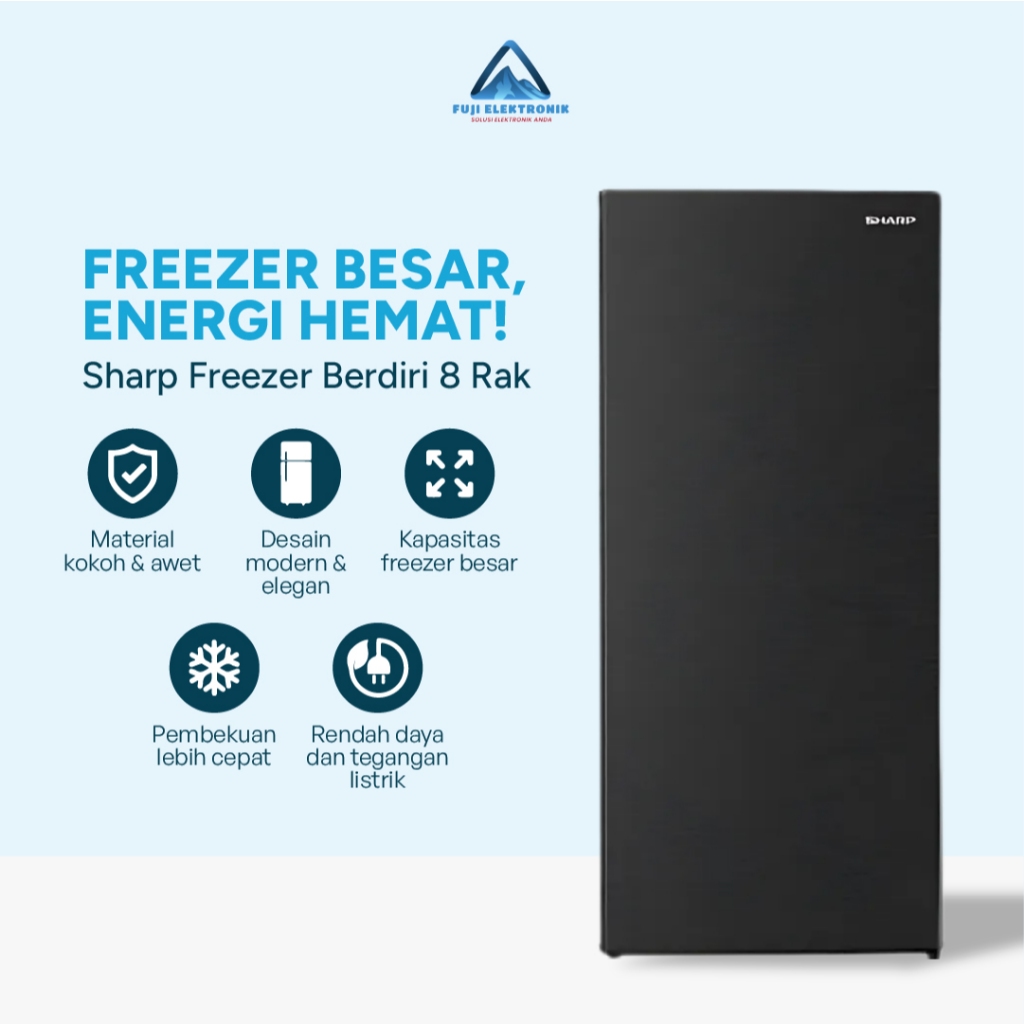 Sharp Freezer 8 Rak Berdiri FJ-M198A-HS Low Watt Fast Freezing Kapasitas Luas 185 Liter Black Gray