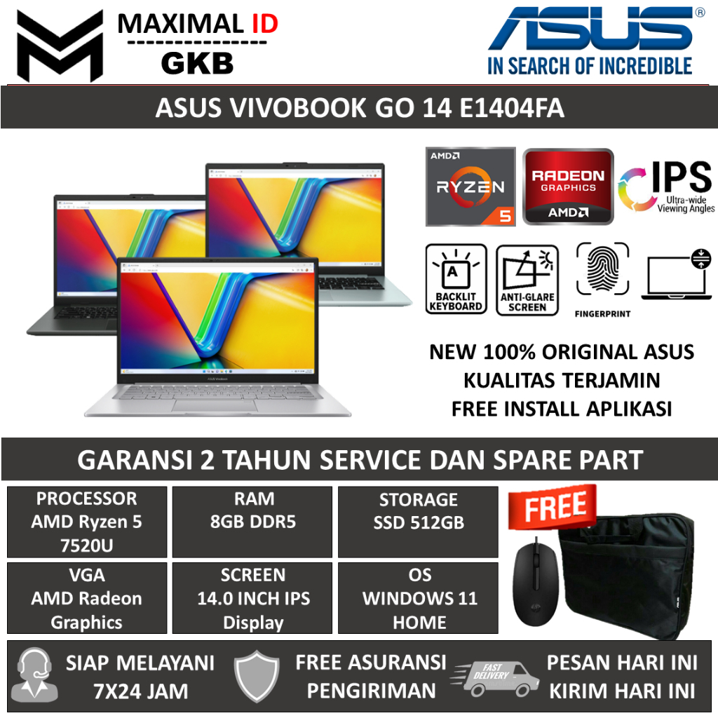 Laptop Asus Vivobook Go E1404FA AMD RYZEN 5 7520U 16GB DDR5 512GB FHD Backlit Win11Home
