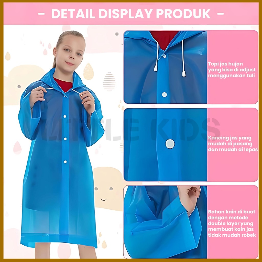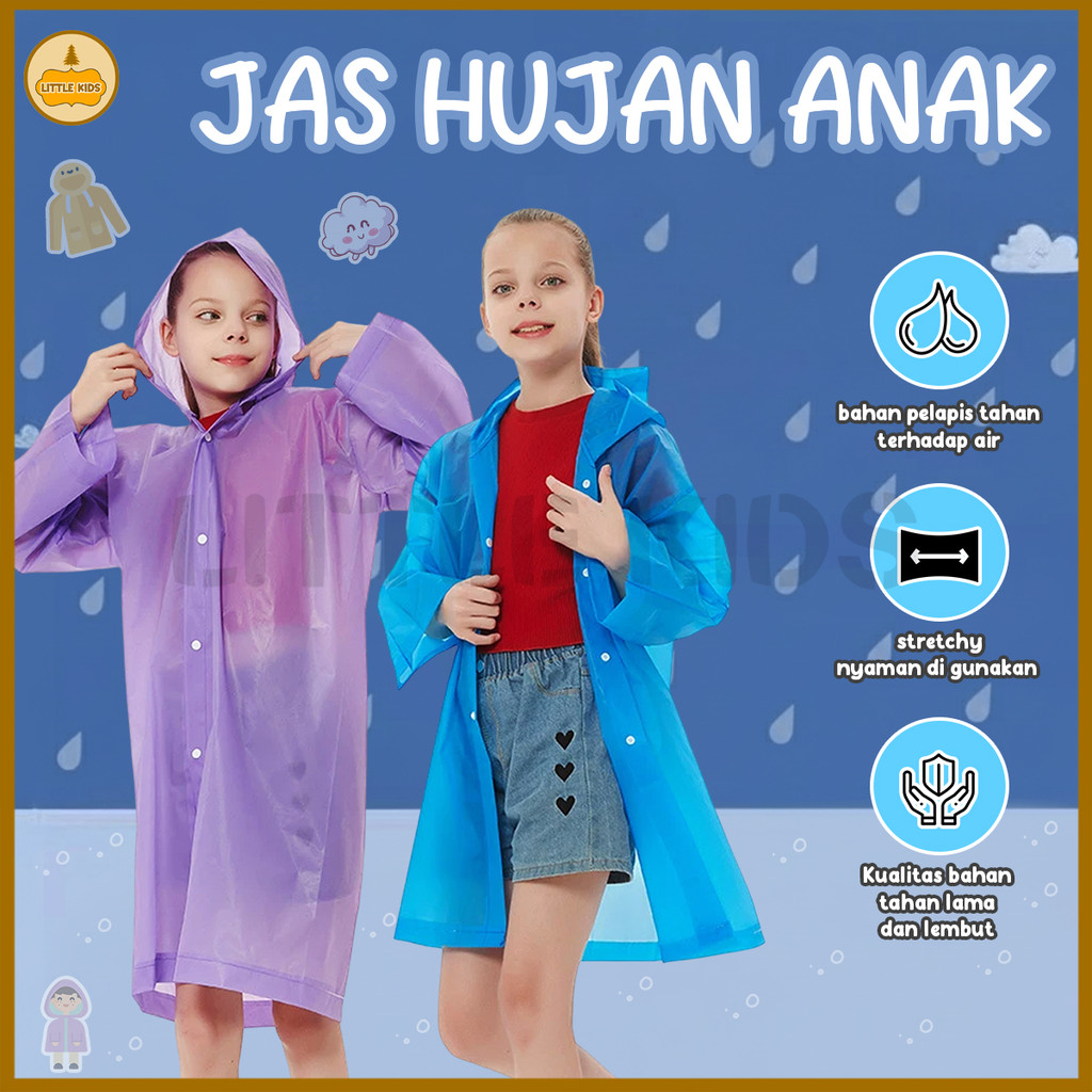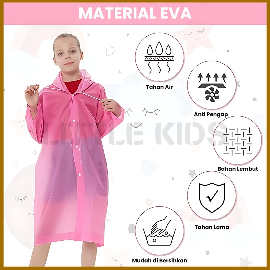 DP 0 Jas Hujan Anakanak | Jas Hujan EVA Unisex | Bahan Tebal Tahan Lama | Raincoat Mantel