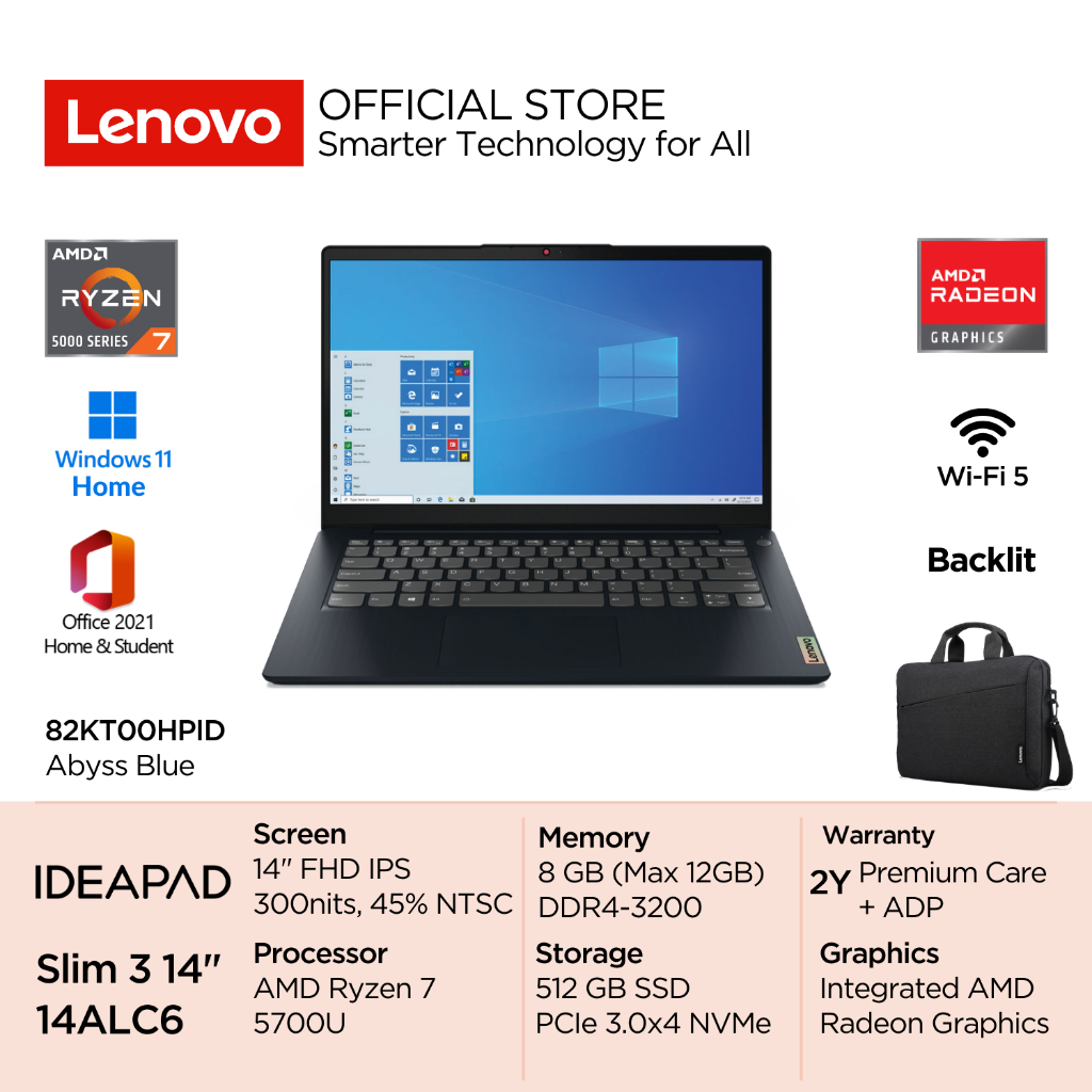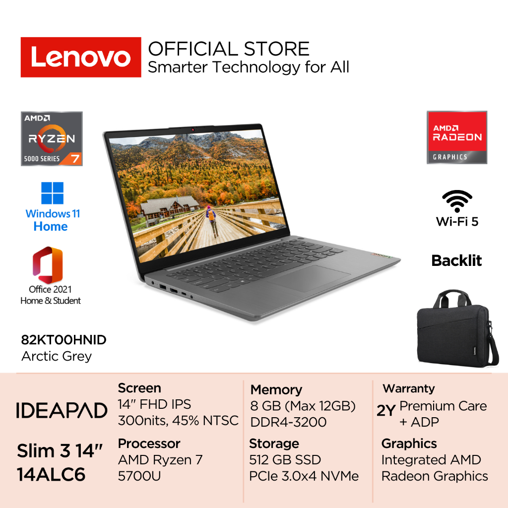 Lenovo IdeaPad Slim 3 14ALC6 AMD Ryzen 7 5700U Win11 8GB 512GB SSD 14" FHD IPS 45 PERSEN NTSC Integrated Radeon OHS WiFi5 Backlit HMID HNID HPID Laptop Ring