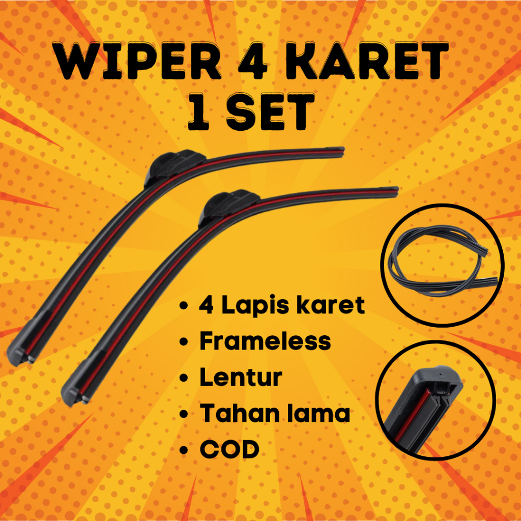 SATU SET WIPER 4 KARET SEPASANG UNIVERSAL WIPER QUAD 4 LAPIS KARET