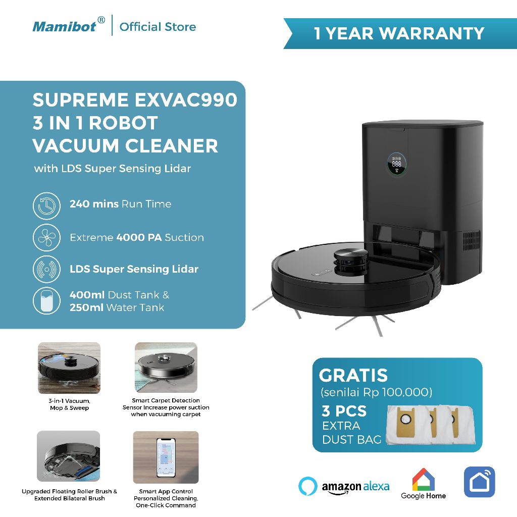 Mamibot Supreme EXVAC990 Robot Vacuum Cleaner with LSD Super Sensing Lidar + Auto Empty Dustbin | Sapu Vacum Pel Vakum Mop | Penyedot Debu