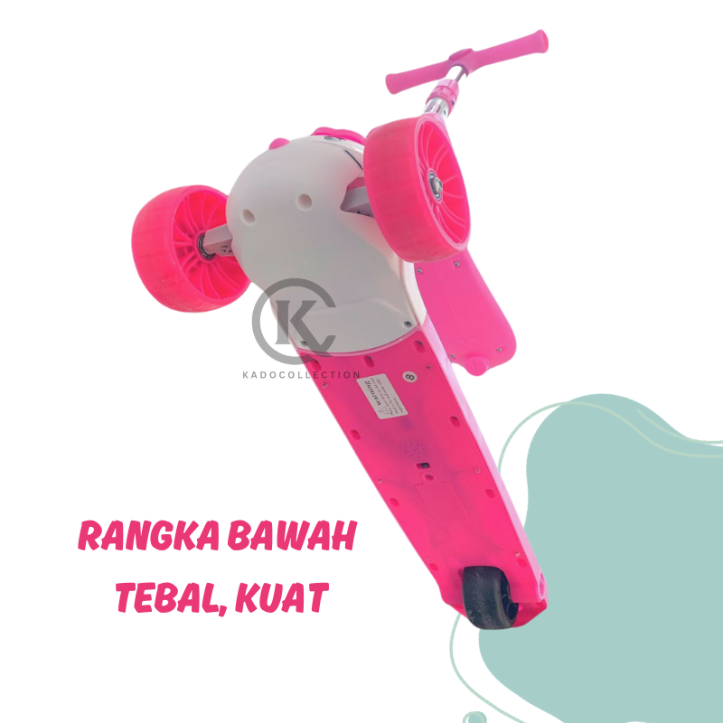 Scooter Anak Murah Model Lipat Ada Musik Lampu / Skuter Mainan Anak 2in1 Roda 3