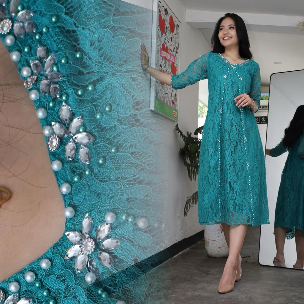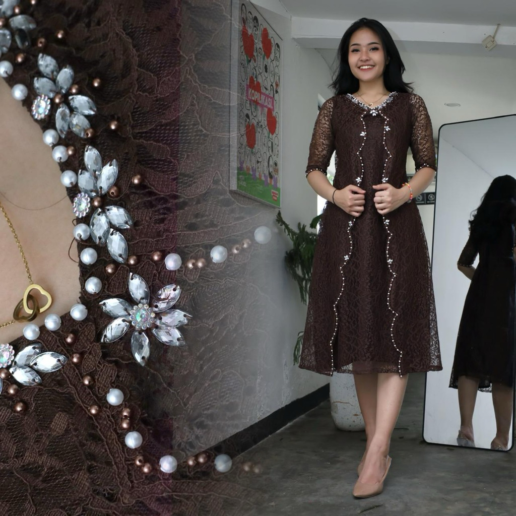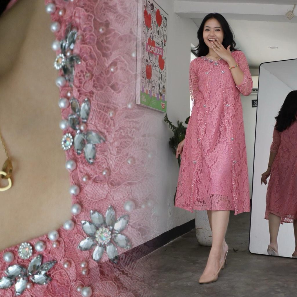 Dress Brukat GABRIELA Mix Payet Mutiara Dress Natal Dan Tahun Baru