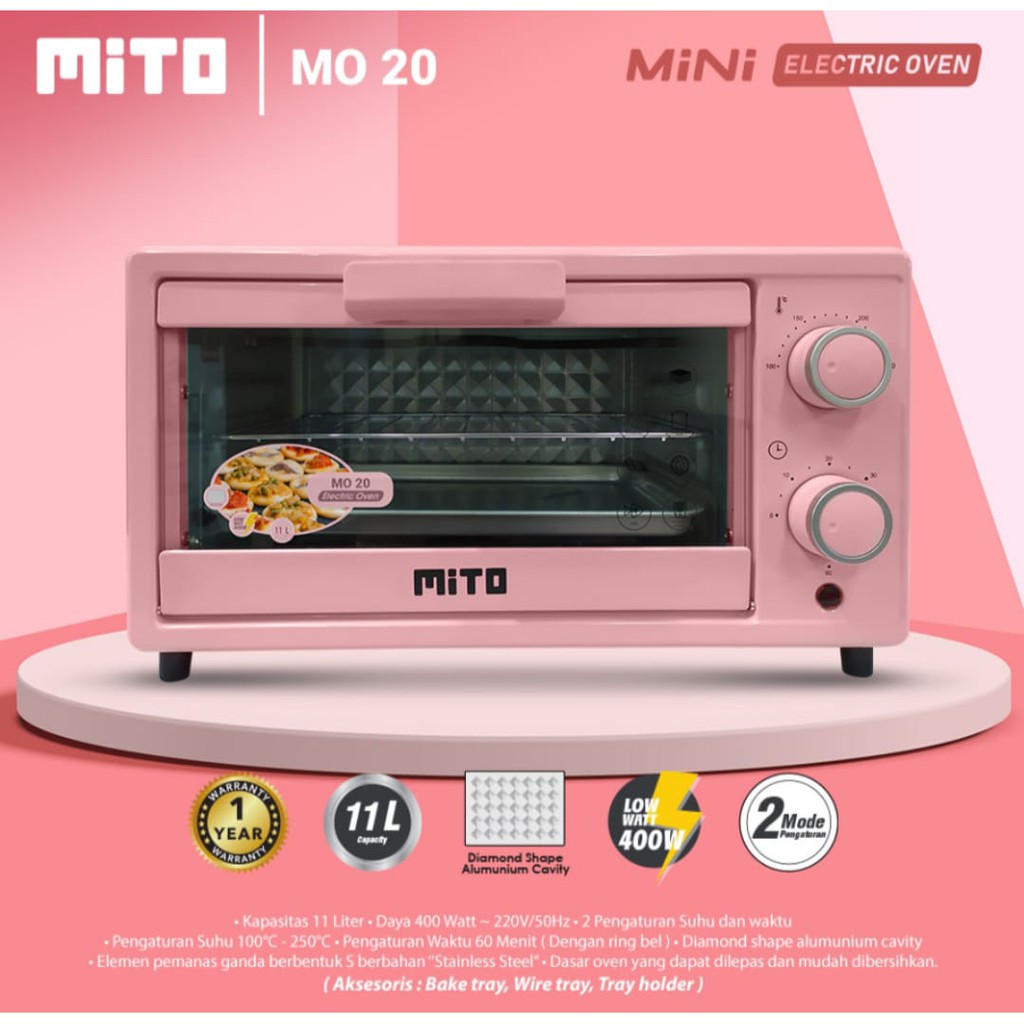 MITO Oven Listrik Mini MITO MO 20 Kapasitas 11 Liter Garansi Resmi 1 tahun