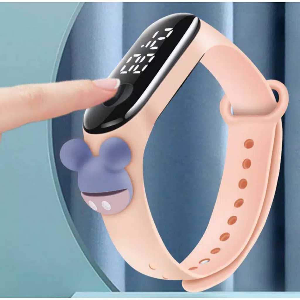 Jam Tangan Anak Elektronik LED Motif Kartun Mickey Pikachu Tali Silikon JT027 INFY
