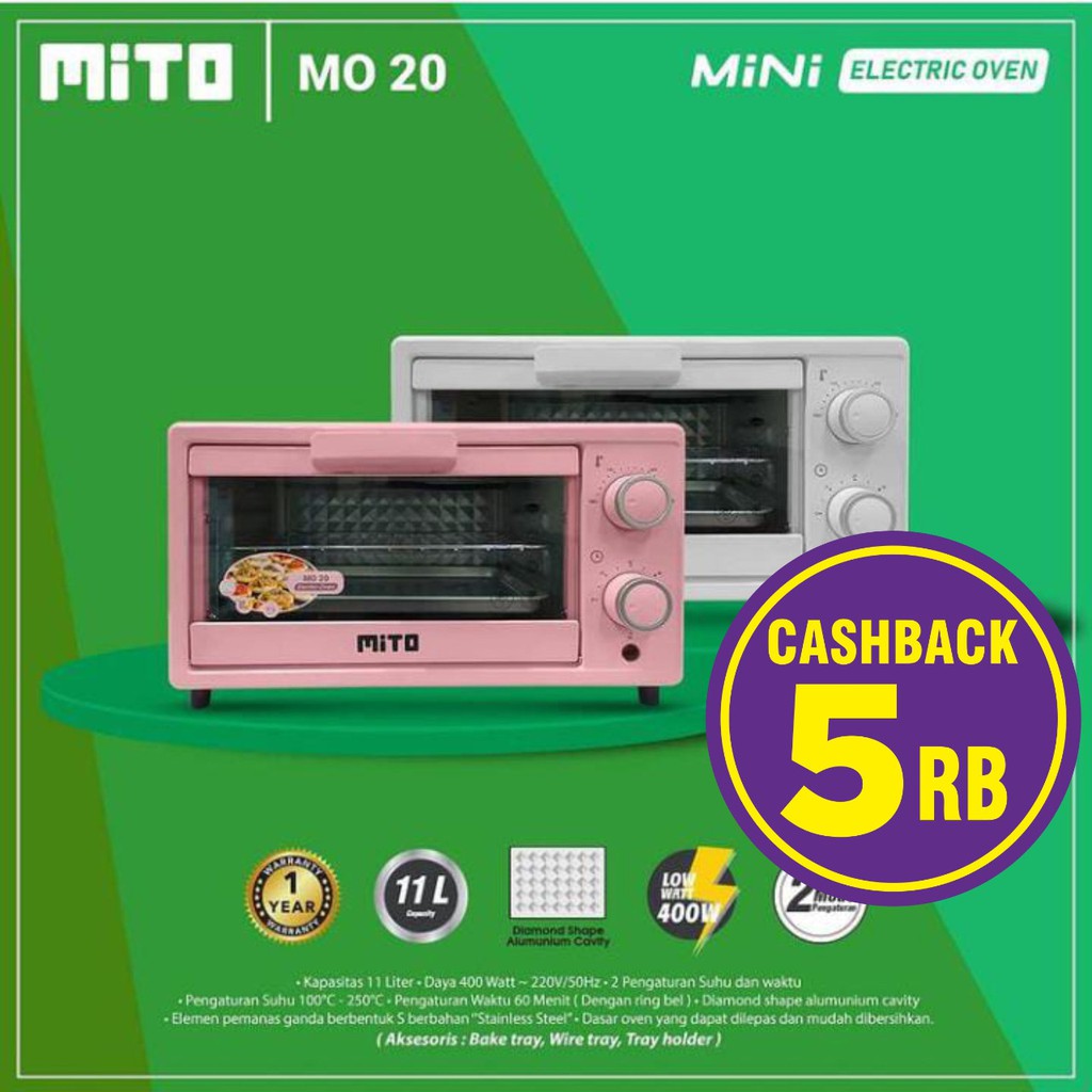 MITO Oven Listrik Mini Electric Oven MITO MO20 MO 20 MO-20 Kapasitas 11 Liter PINK / PUTIH GARANSI RESMI