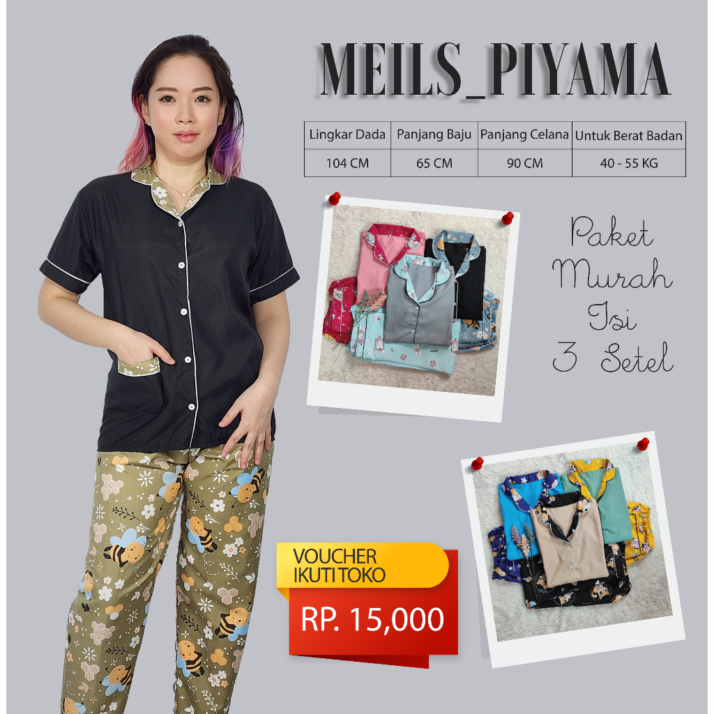 Baju Tidur / Piyama Paket Murah 85 RB Dapat 3 Setel Dewasa, LD 104 CMLengan Pendek, Celana Panjang