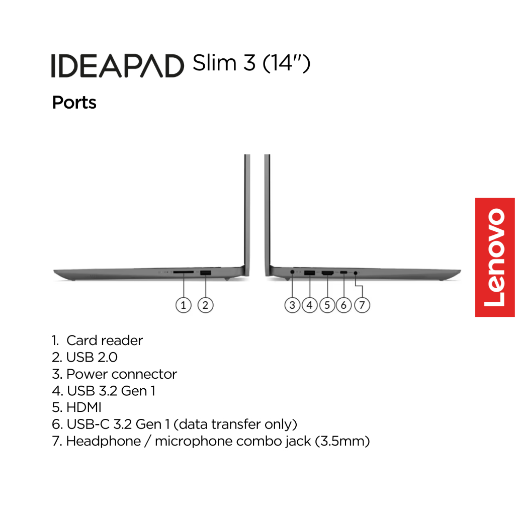 Lenovo IdeaPad Slim 3 14ALC6 AMD Ryzen 7 5700U Win11 8GB 512GB SSD 14" FHD IPS 45 PERSEN NTSC Integrated Radeon OHS WiFi5 Backlit HMID HNID HPID Laptop Ring