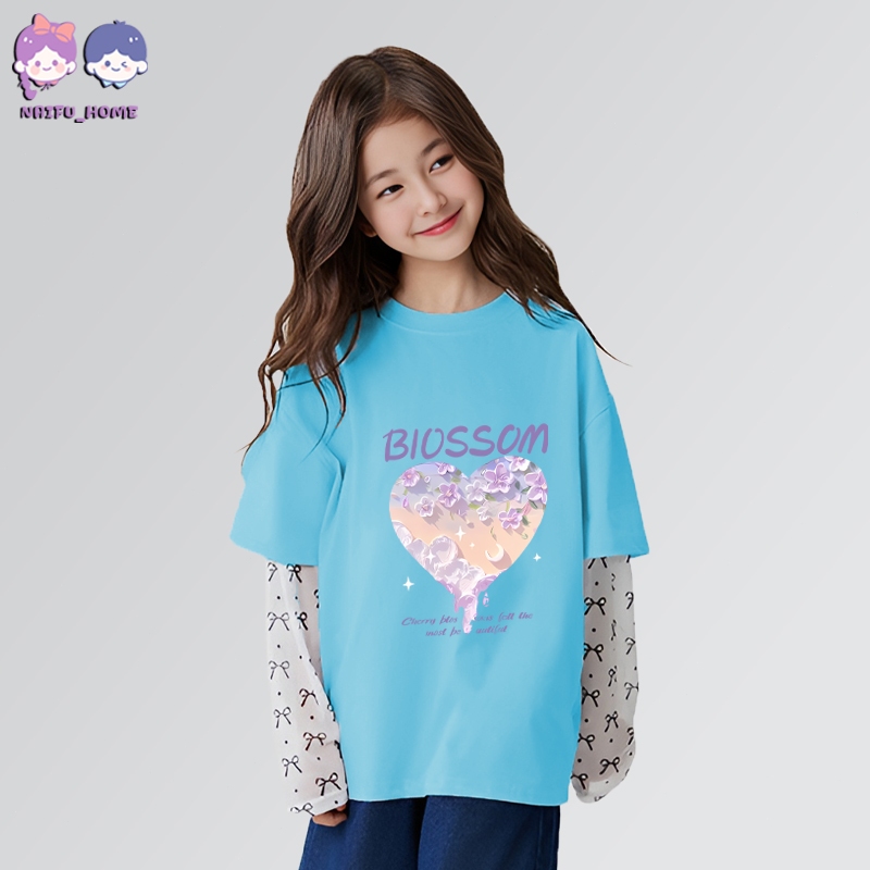 Kaos Anak Perempuan Baju Vintage Flower Heart Kaos Lucu Anak Perempuan Uisa 213Tahun 30S Baju Cewek