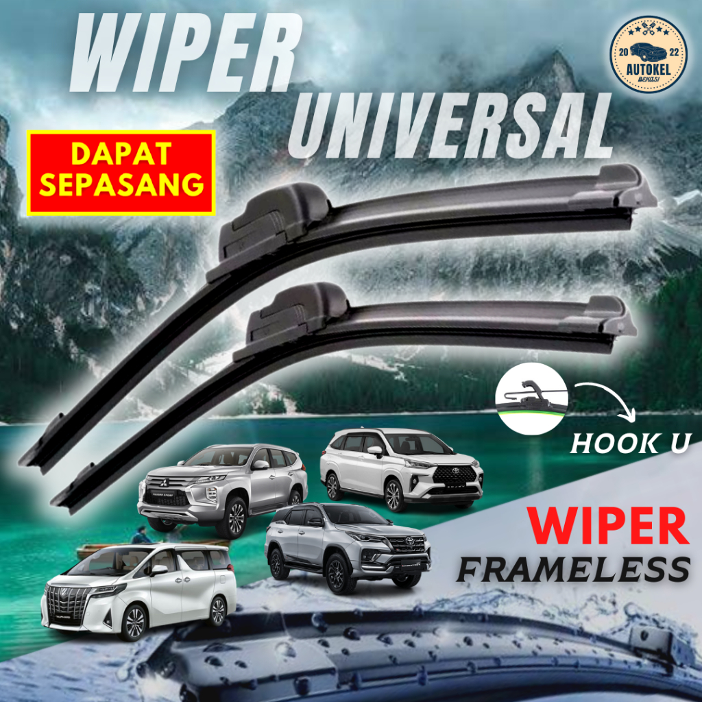 Wiper Mobil Frameless UNIVERSAL Untuk Semua Mobil Atau Umum Bebas All Mobil Frameles Import Berkualitas Bahan Karet Tebal dan Lentur 1 Set dapat 2 Pcs Kiri dan Kanan