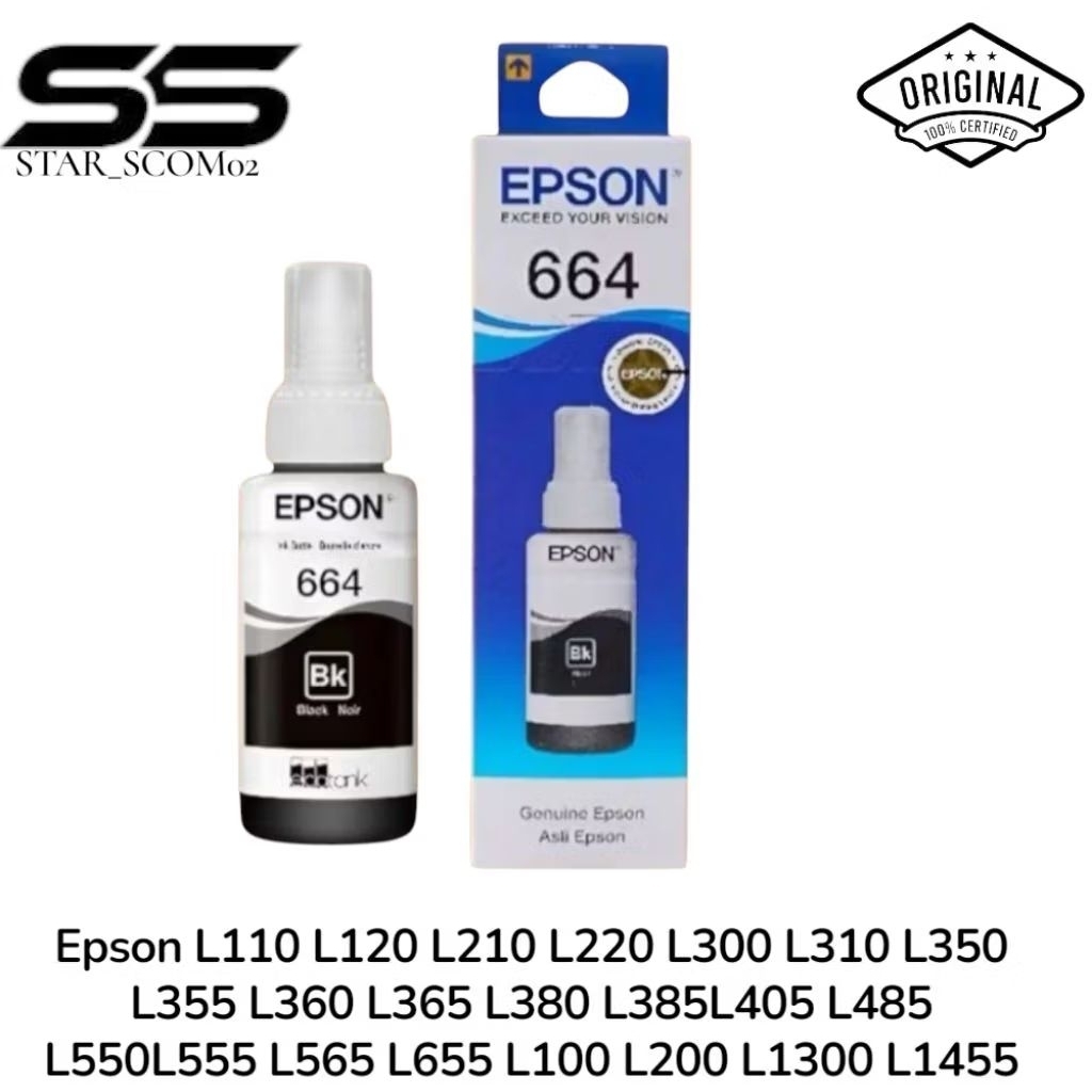1SET TINTA EPSON 664 ORIGINAL L100 L110 L111 L120 L130 L132 L200 L210 L211 L220 L222 L300 L301 L310 L350 L351 L353 L355 L356 L358 L360 L362 L365 L366 L375 L455 L456 L475 L550 L551