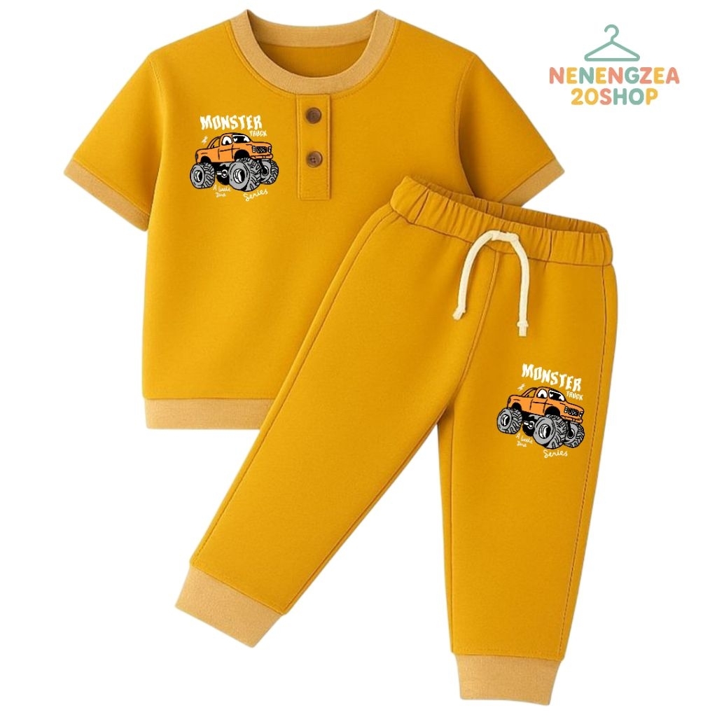 Baju Tidur Anak Laki Laki Motif Mobil Monster Truck Celana Panjang Usia 2 6 Tahun – Kiano