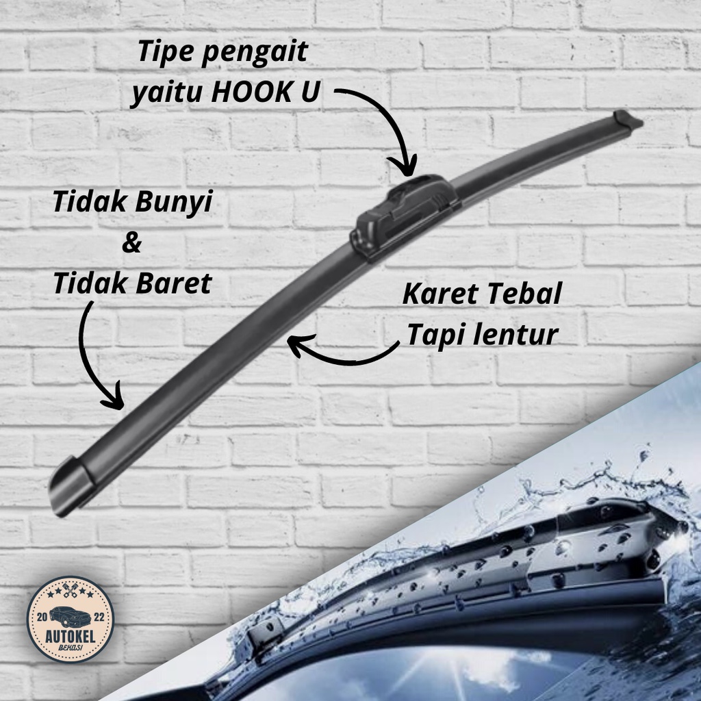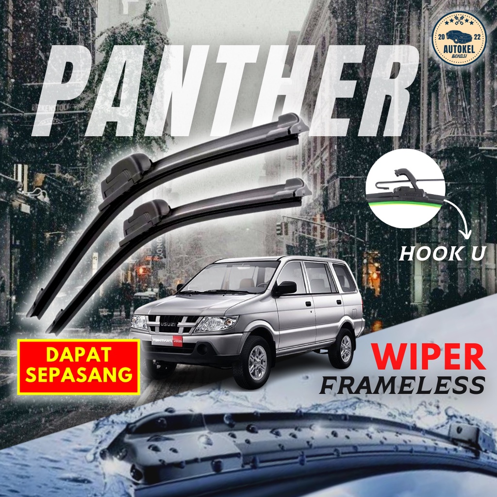 Wiper Frameless Mobil Isuzu Panther 2 Pcs Atau 1 Pasang Kiri Dan kanan Wifer Frameles Tanpa Rangka Besi Model Banana Impor Berkualitas Bahan Karet Tebal Lentur Elegan Mewah Premium