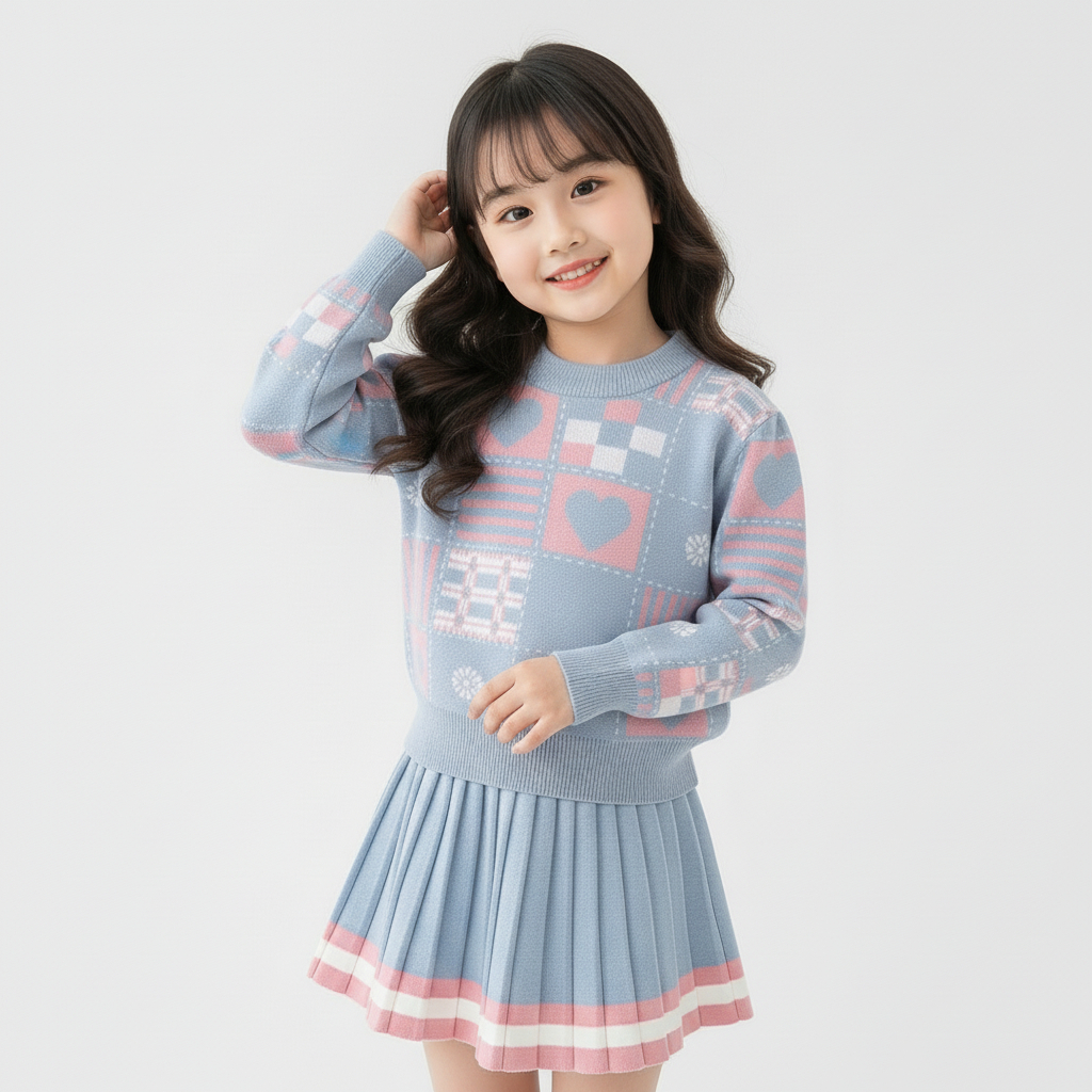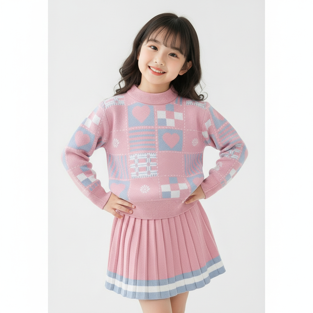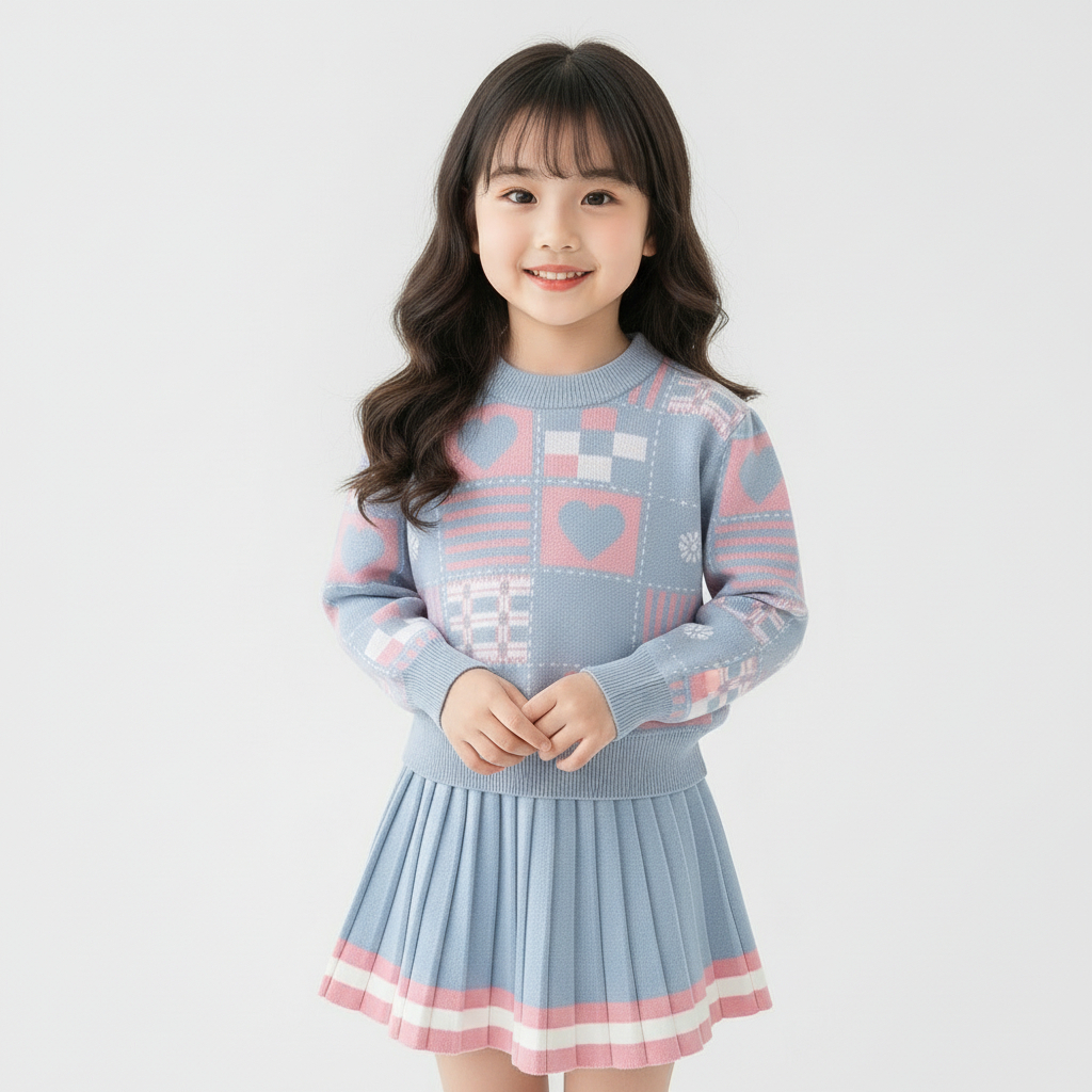 Setelan Baju Anak Perempuan Korean Bahan Rajut Premium One Set Kids Umur 15 Tahun
