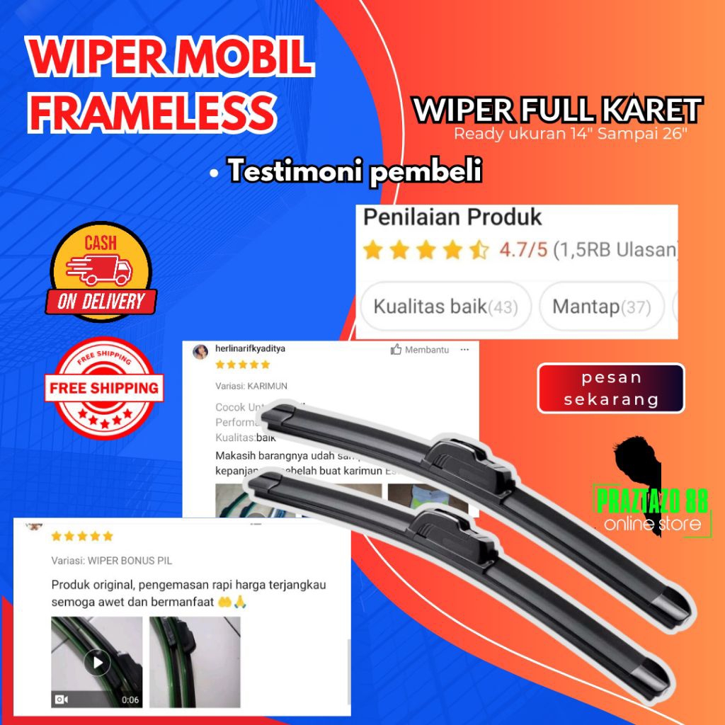 Promo Wiper Kaca Mobil/Wiper Frameless 1set 2pcs Untuk Semua Tipe Mobil