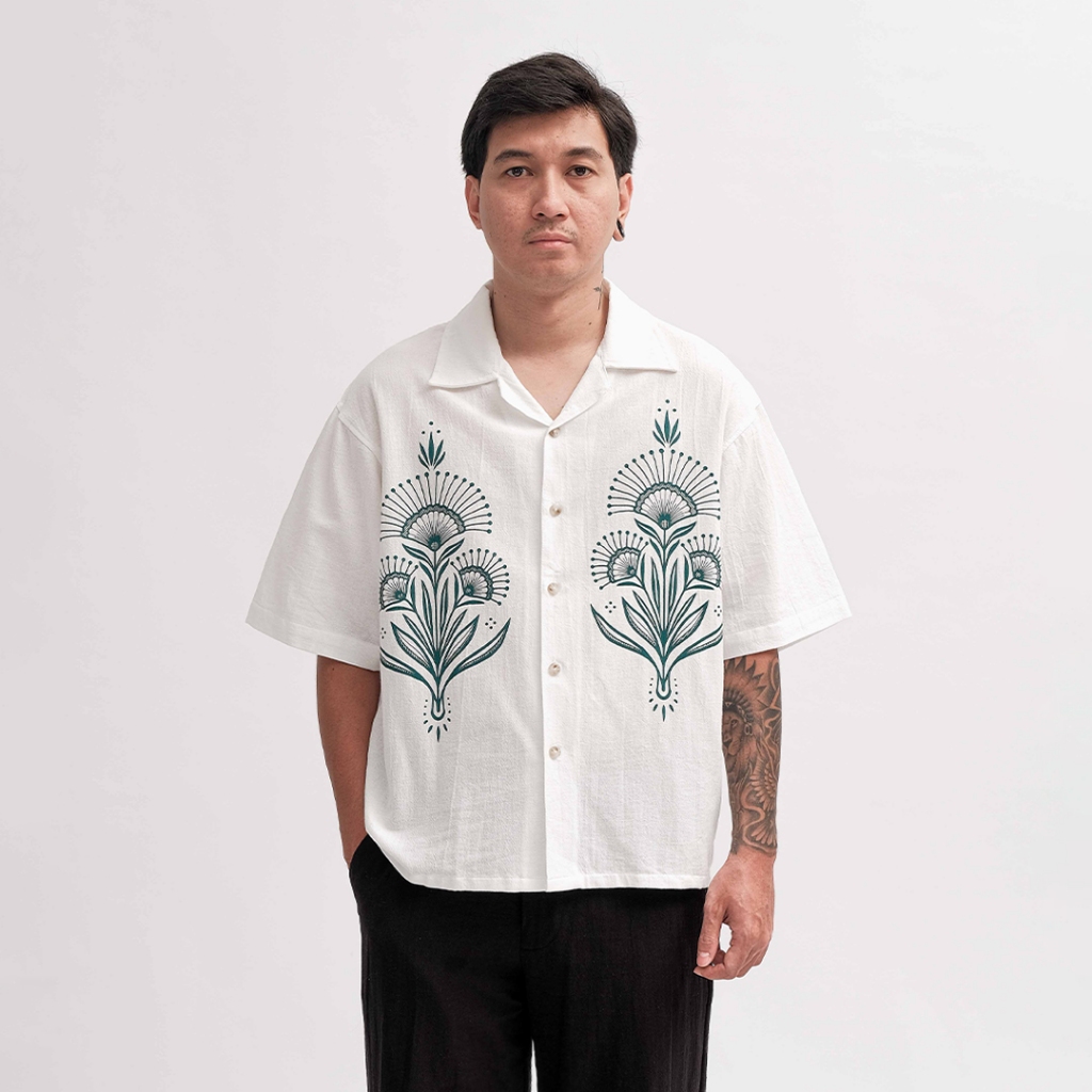 Kemeja Linen Wanita Boxy V-Neck Lengan Pendek Nyaman Casual Harian – Hamata Studios