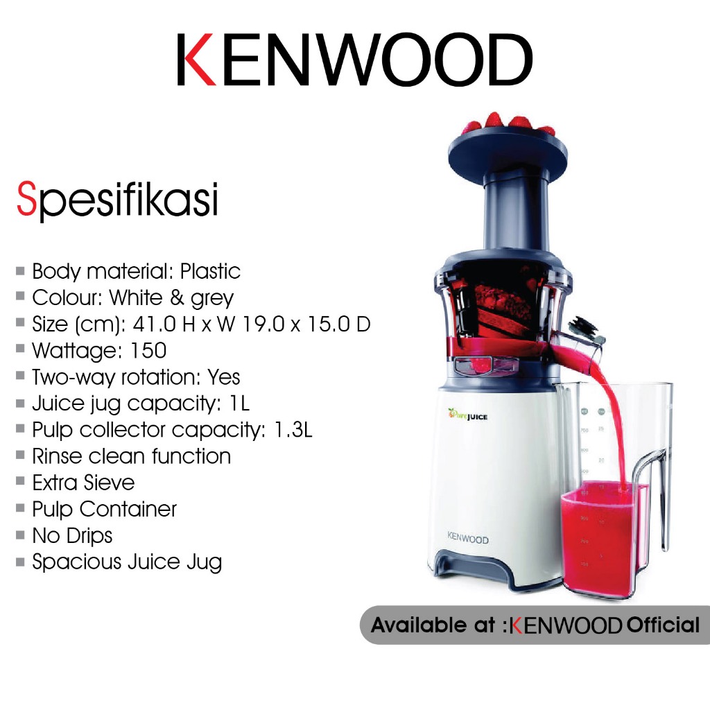 KENWOOD SLOW JUICER PURE SLOW JUICER - JMP600WH - GARANSI RESMI 1 TAHUN