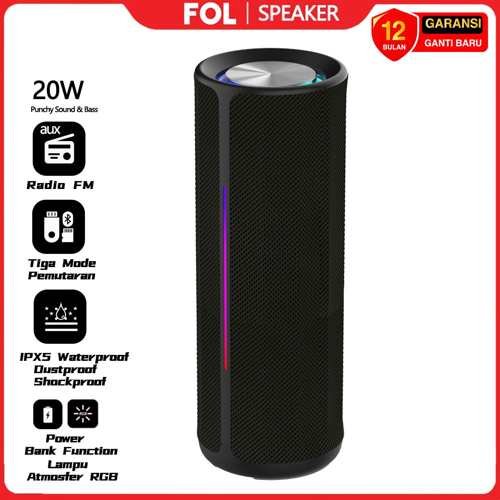 FOL Speaker Bluetooth Portable Super Bass Waterproof musik box Speaker Wireless with RGB Lights TWS