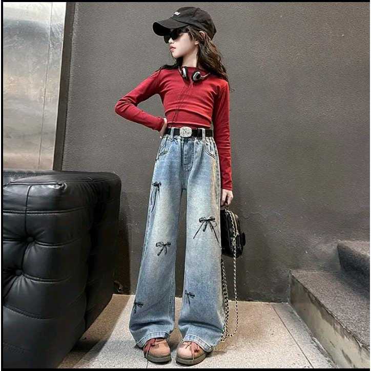 Celana Jeans Anak Perempuan Panjang Motif Pita dan Love Terbaru