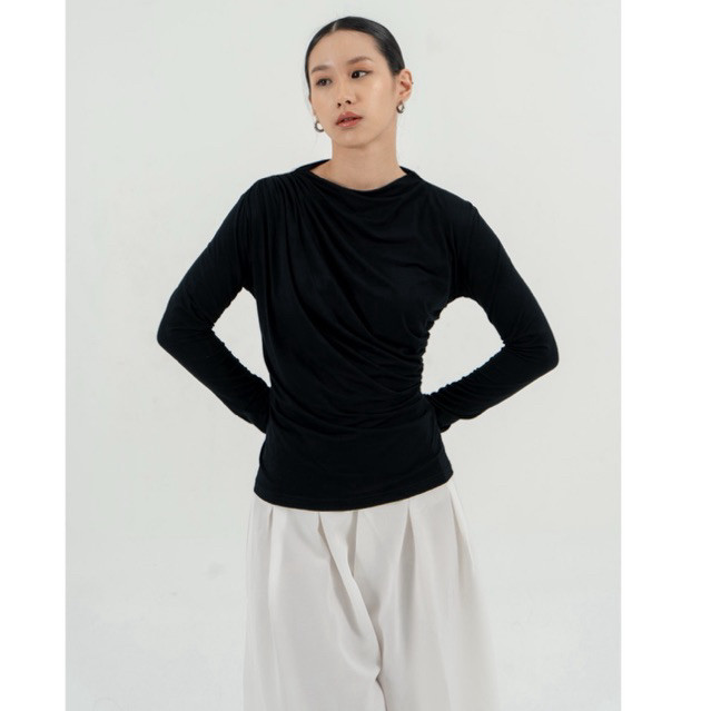 Blouse Wanita Longsleeve Jumbo Korean Style Oneck Serut Kekinian – Fayra