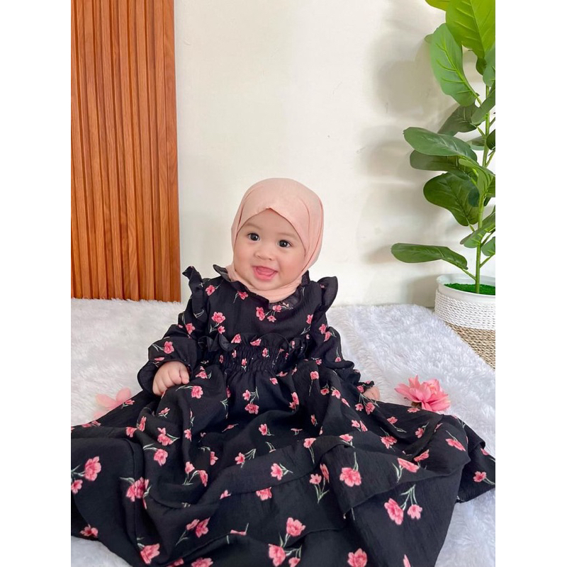DP 0 dress gamis anak balita perempuan 1 2 3 tahun baju muslim anak cewek dress lengan panjang anak balita ALEA FLORA MALINA gamis dress